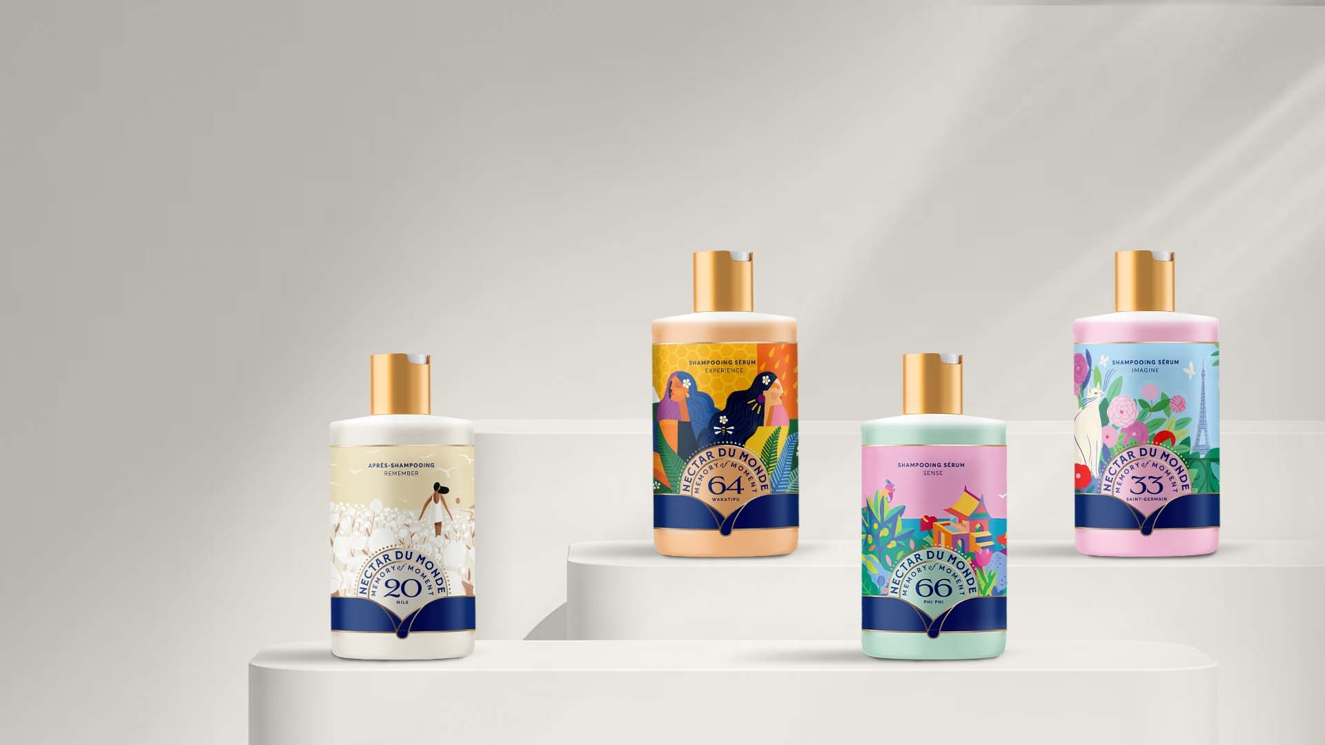 Nectar du Monde 的使命是环游世界,寻找独特的故事、天然成分、微妙的香味,并将其转化为制作精美且受文化启发的产品。第一个系列由三款洗发水和一款洗发水组成,灵感来自法国、泰国、新西兰和埃及