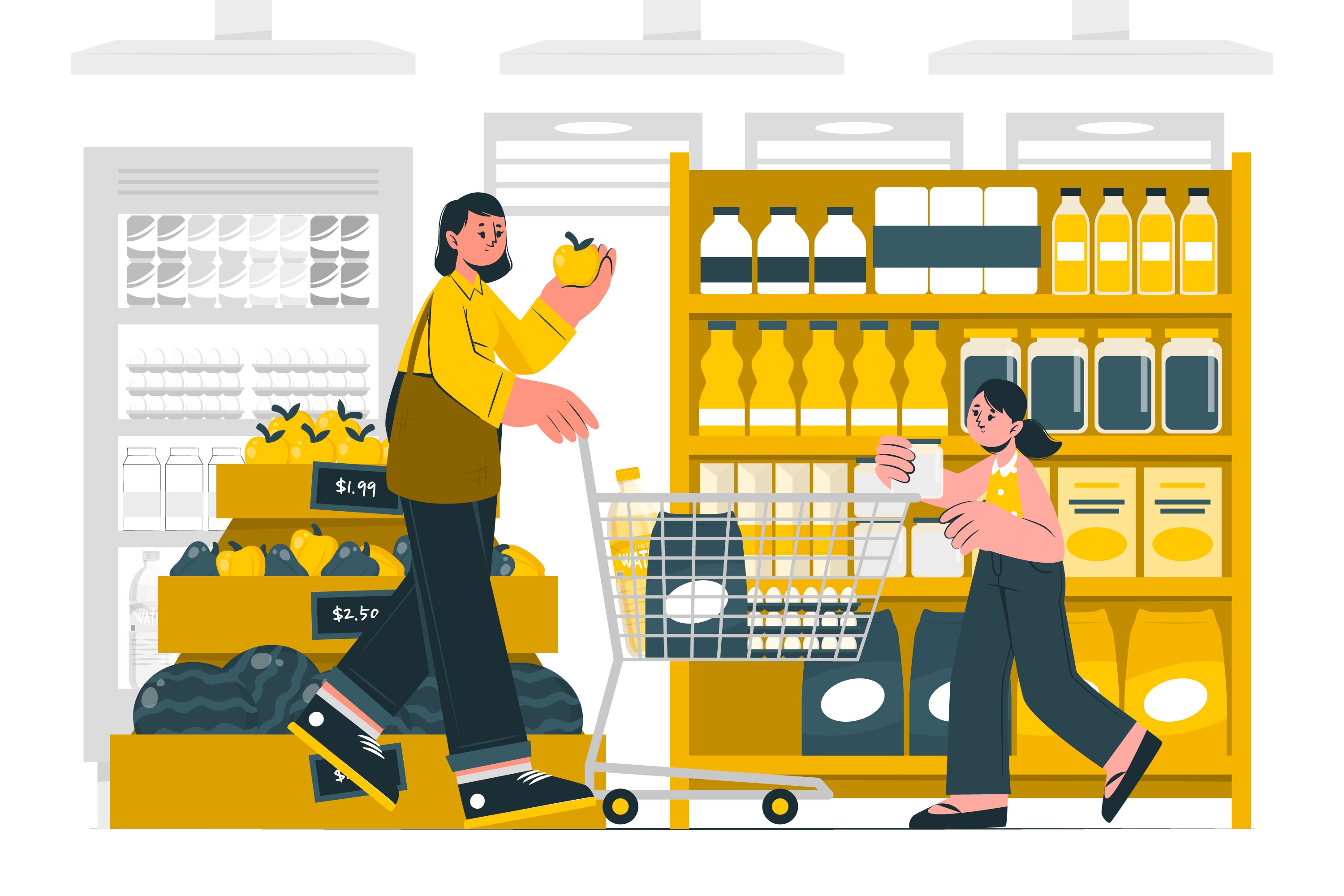 1 张 超市购买牛奶的母女卡通素材下载
