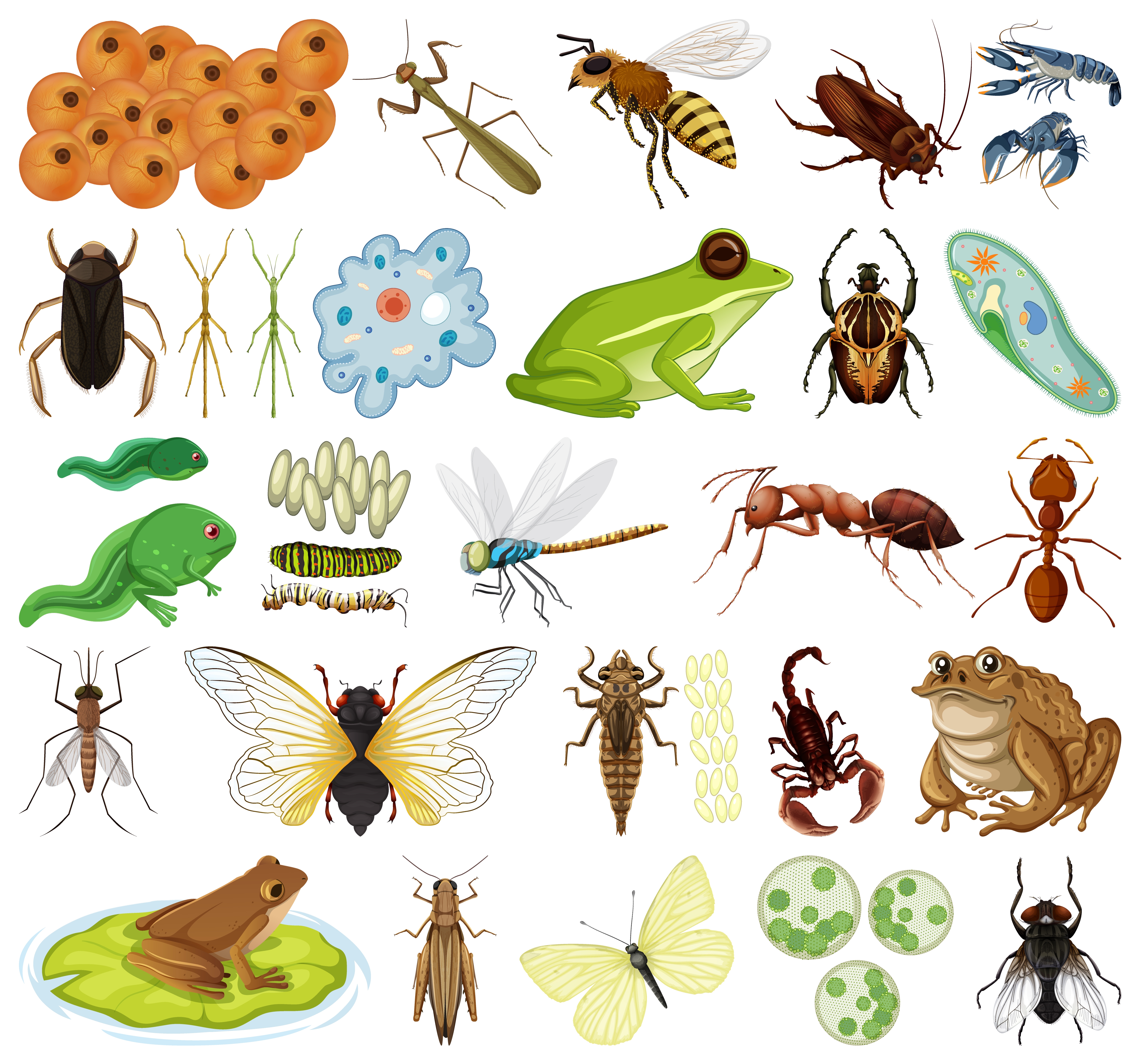 1 张 逼真的卡通昆虫两栖动物素材下载