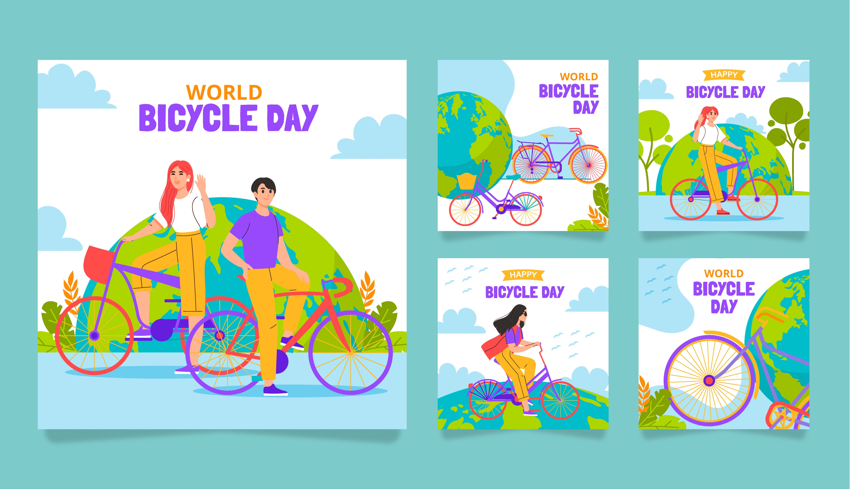 1 张 手绘卡通的世界自行车日庆祝活动
