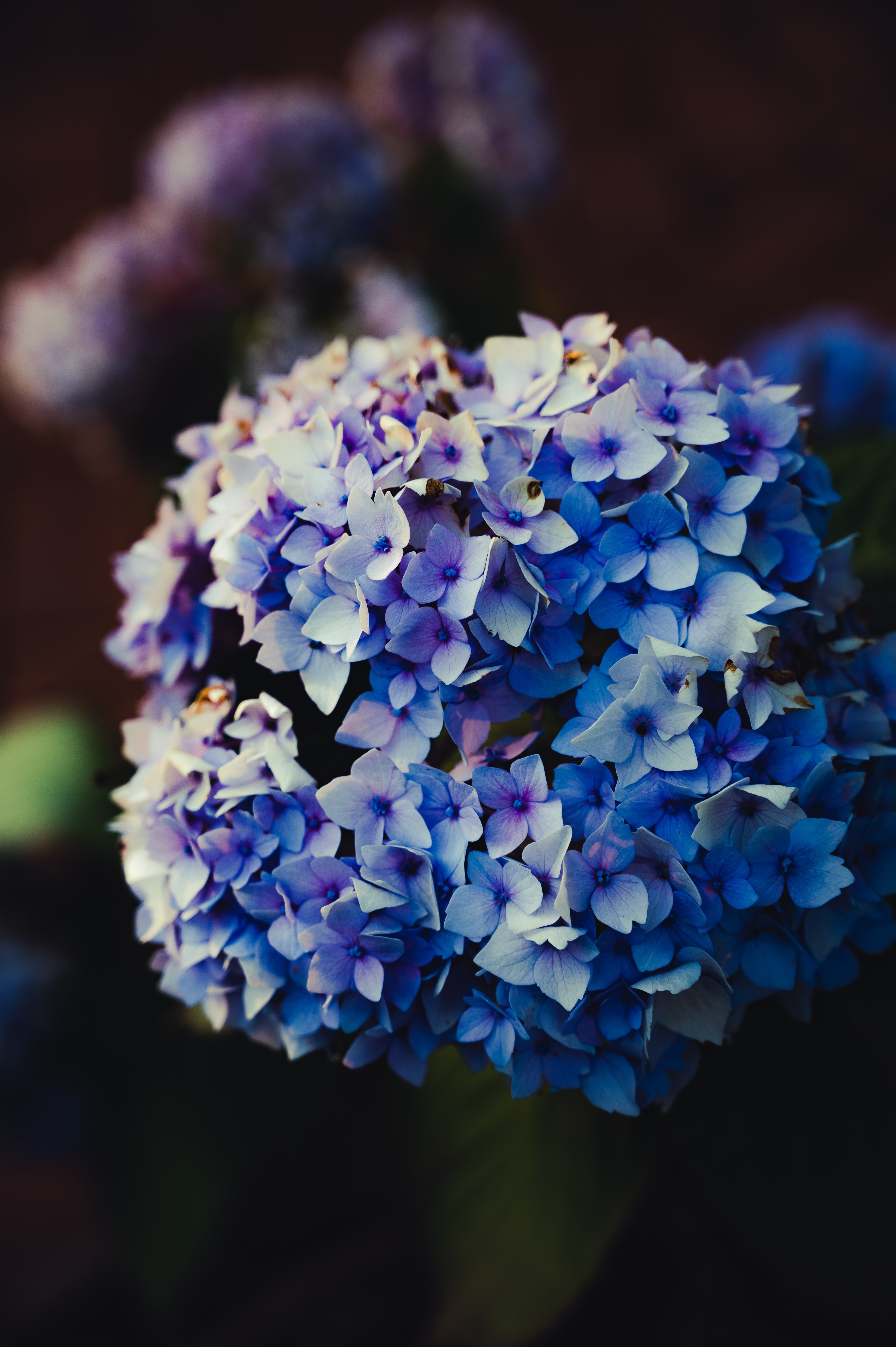 1 张 带水滴的蓝色绣球花