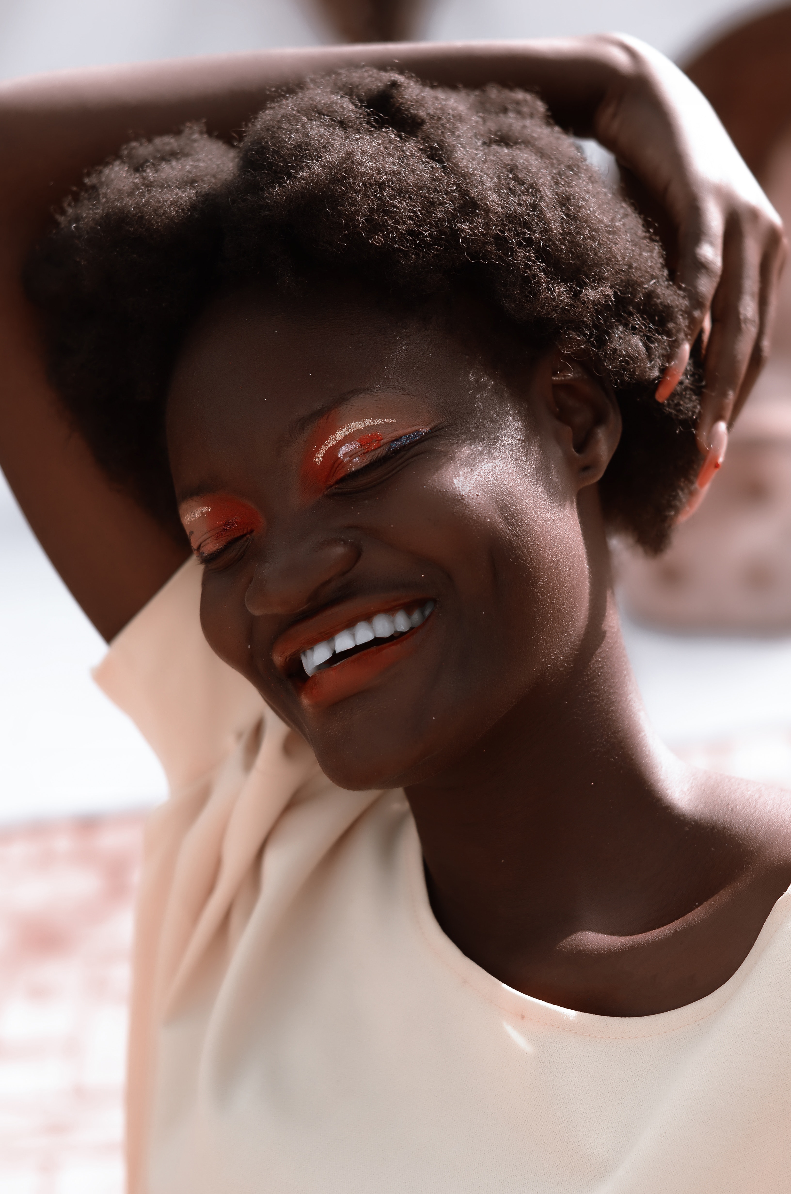 1 张 反手摸脸的非洲彩色眼影美女