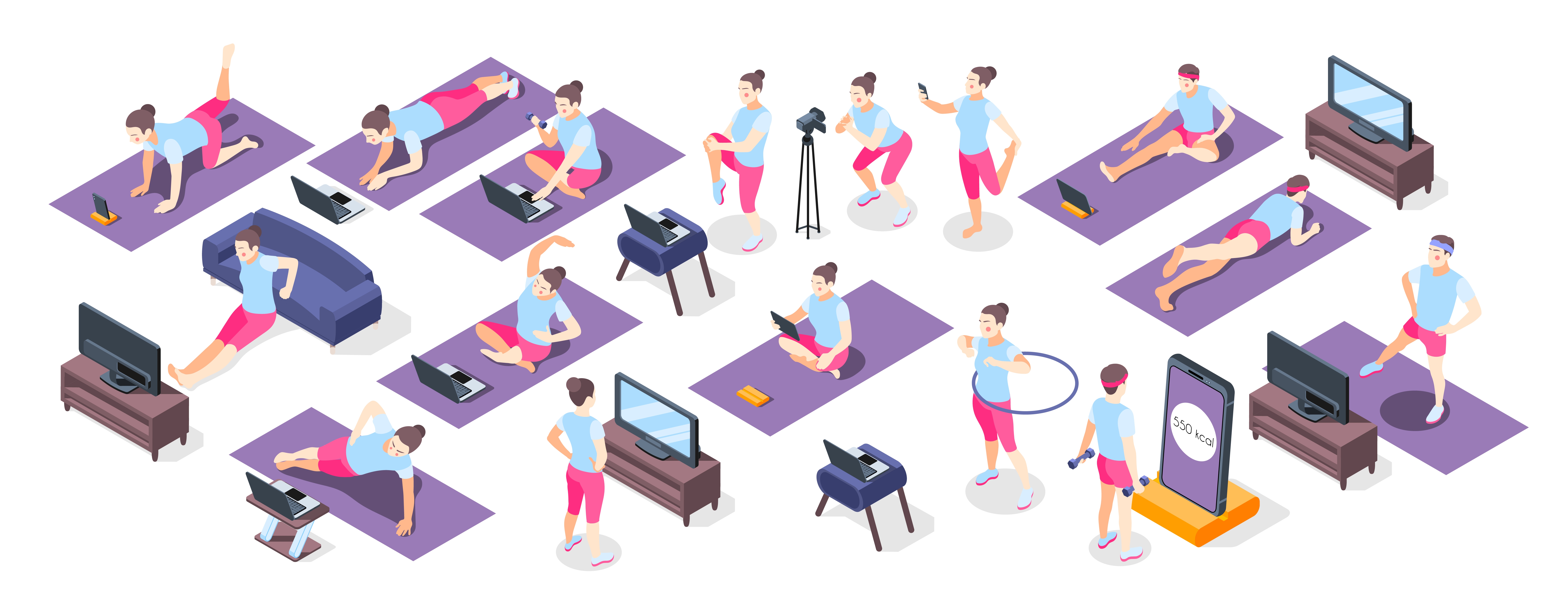 1 张 卡通居家瑜伽锻炼运动素材下载