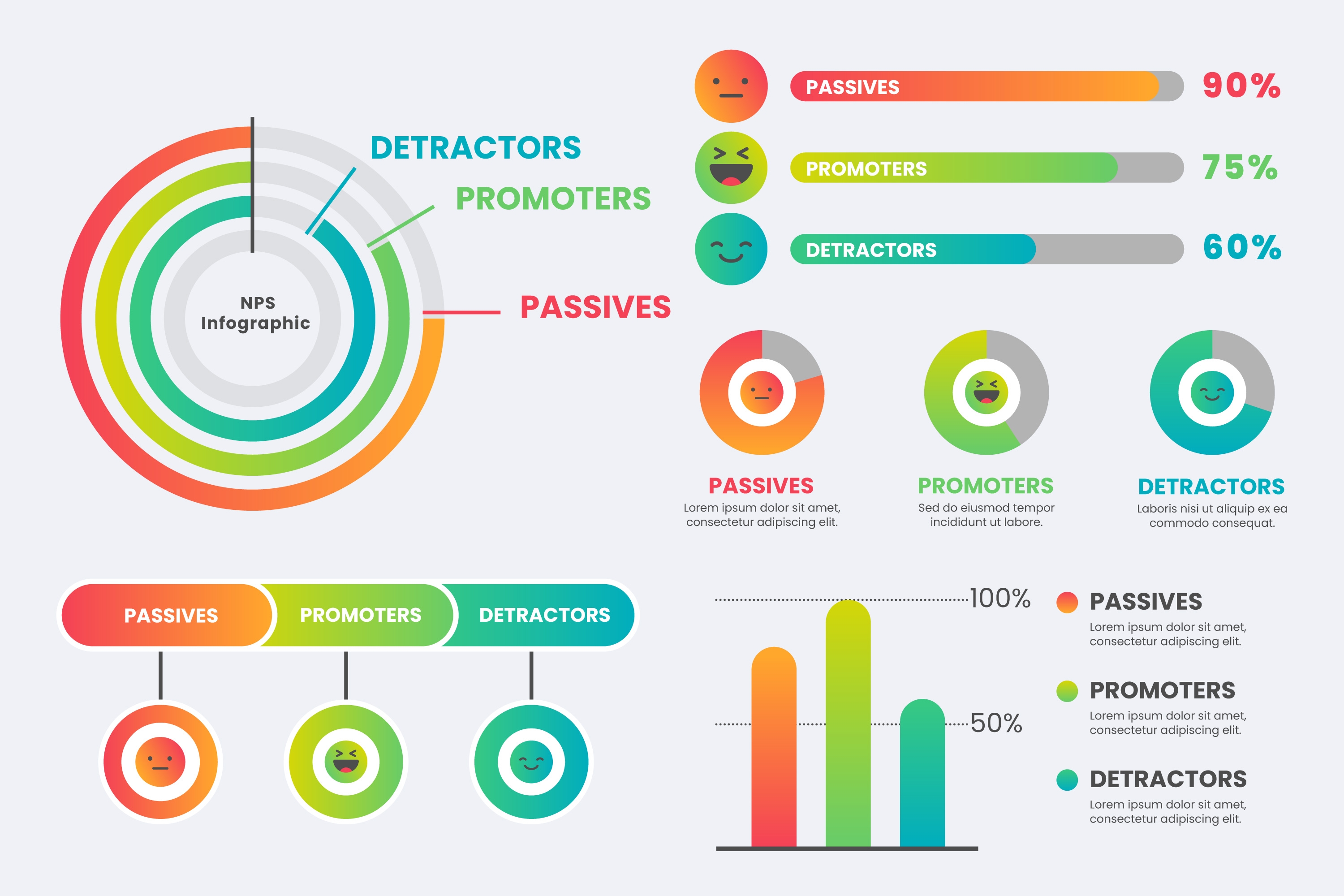 1 张 扁平化多彩渐变色卡百分比信息图表