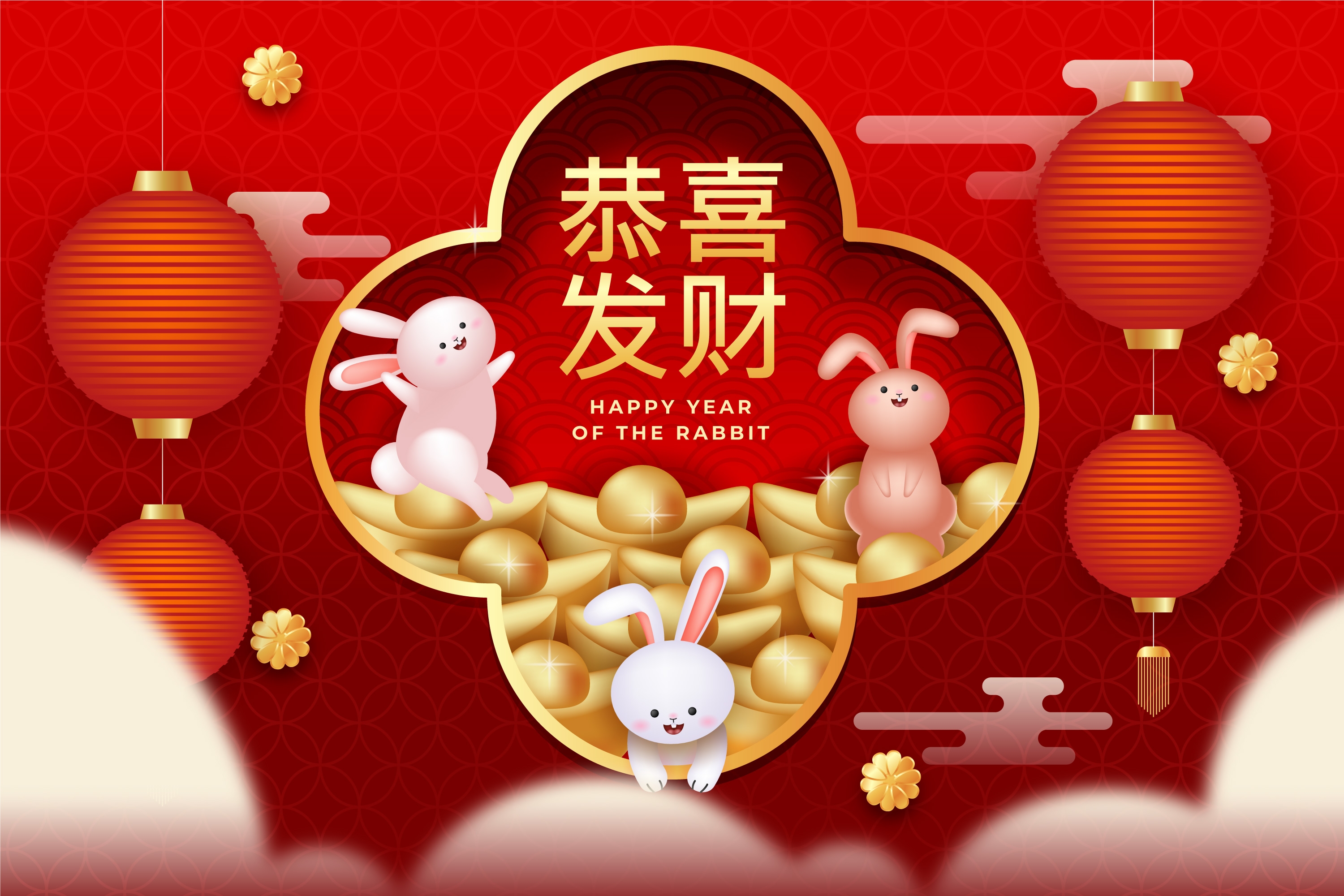 1 张 恭喜发财-兔年窗花剪纸素材下载