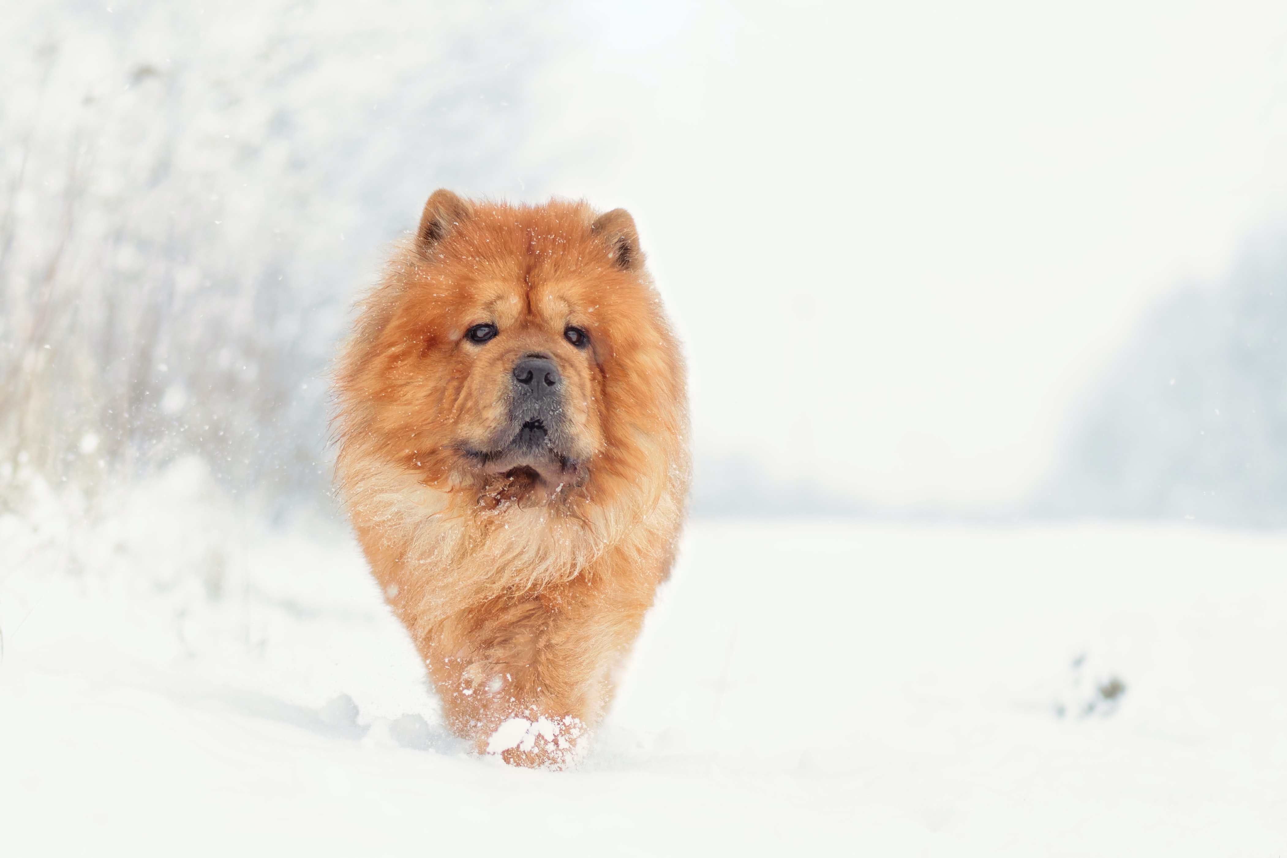1 张 雪地中奔跑的松狮犬宠物狗