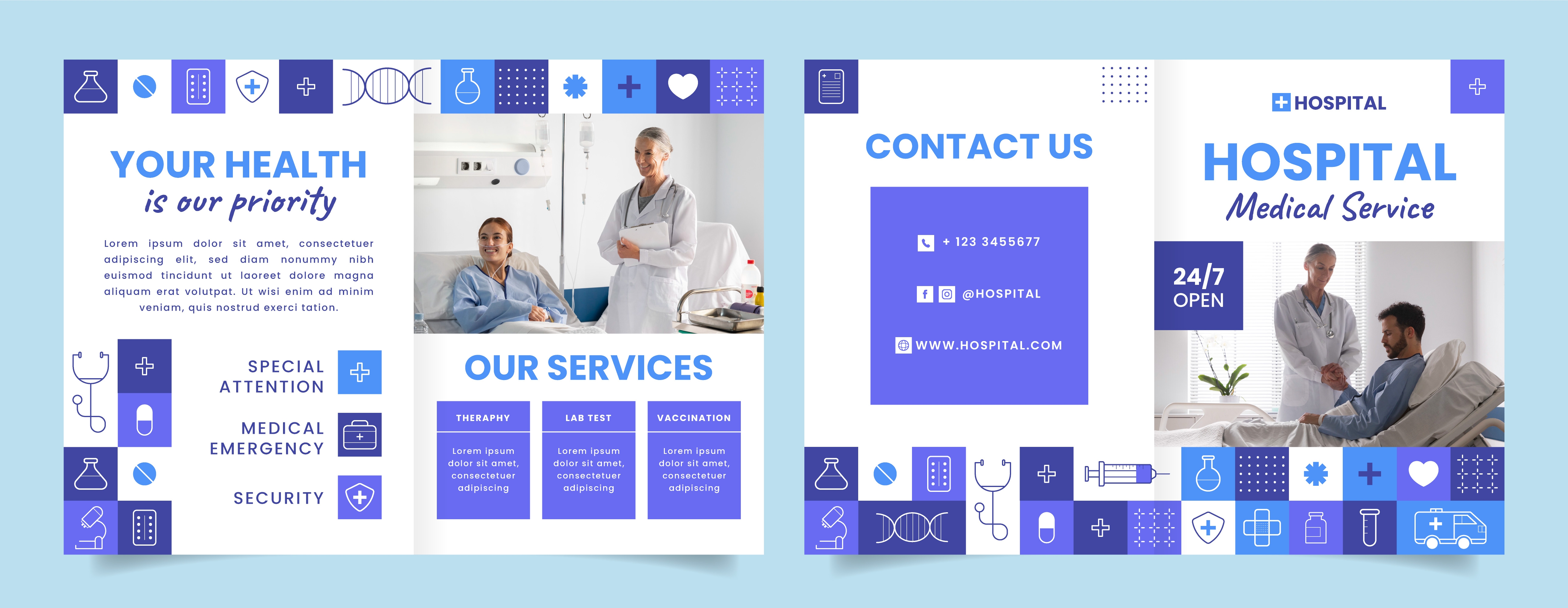 1 张 蓝色医院宣传册模板设计