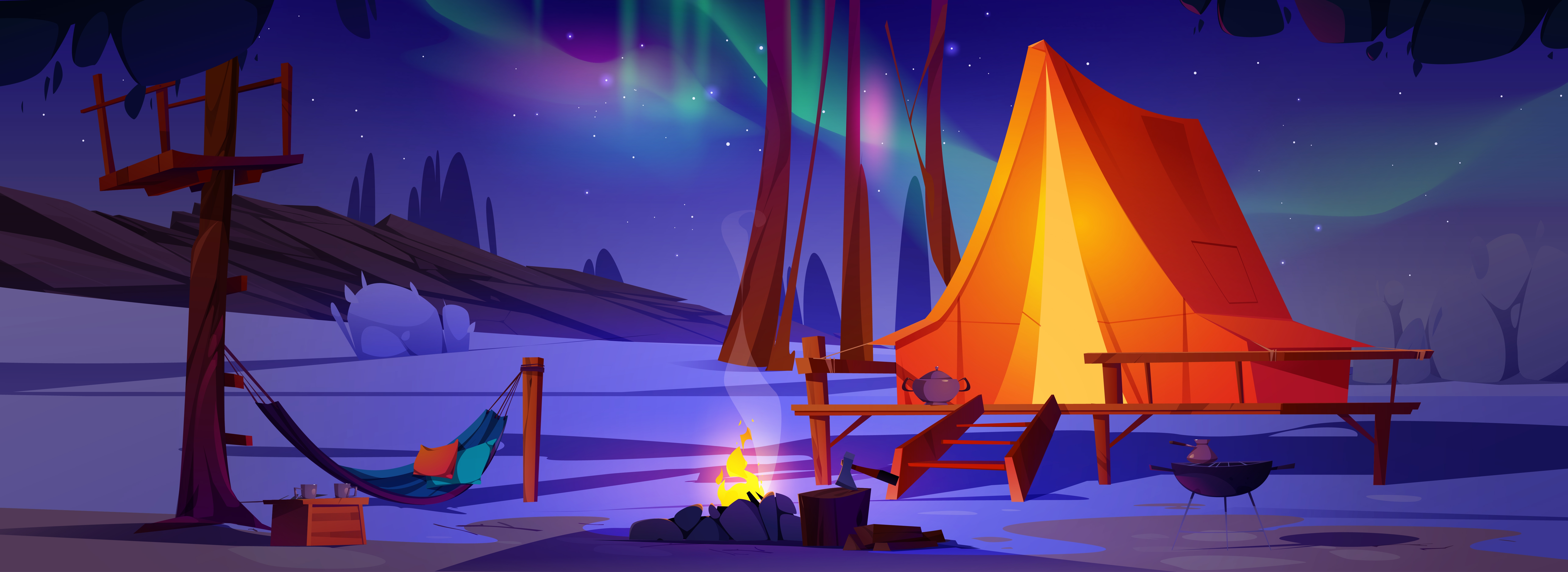 1 张 冬季北极光露营夜插图