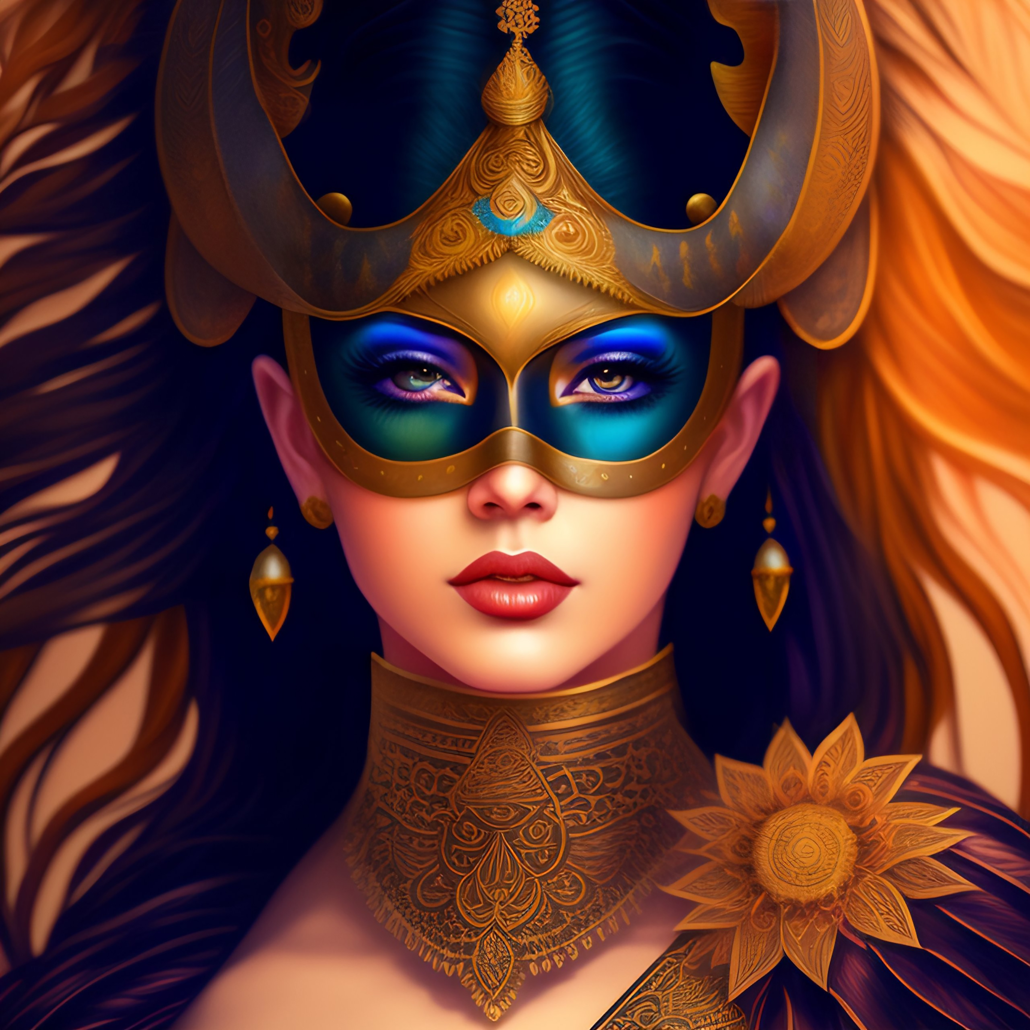 1 张 手绘孔雀面具女郎