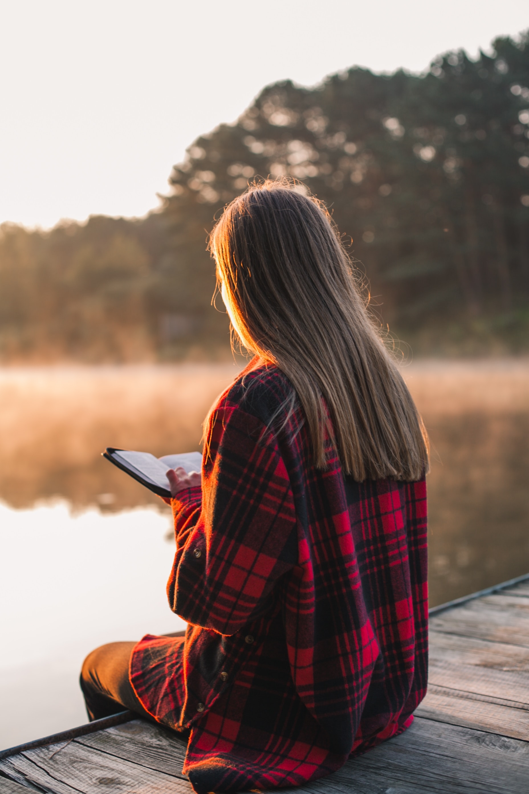 1 张 坐在河边看 笔记的长发女郎
