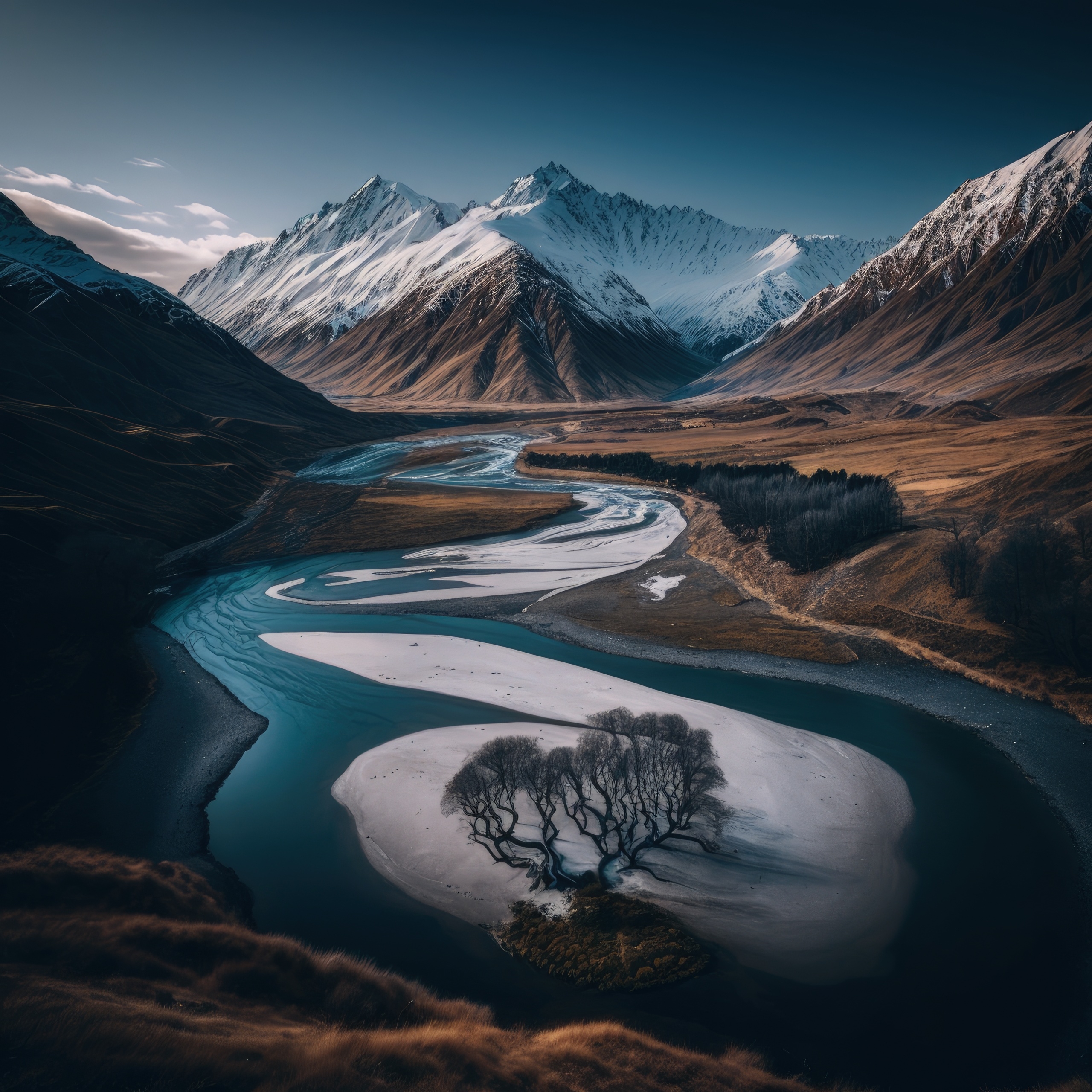 1 张 高空俯拍的蛇形蜿蜒河谷山河图