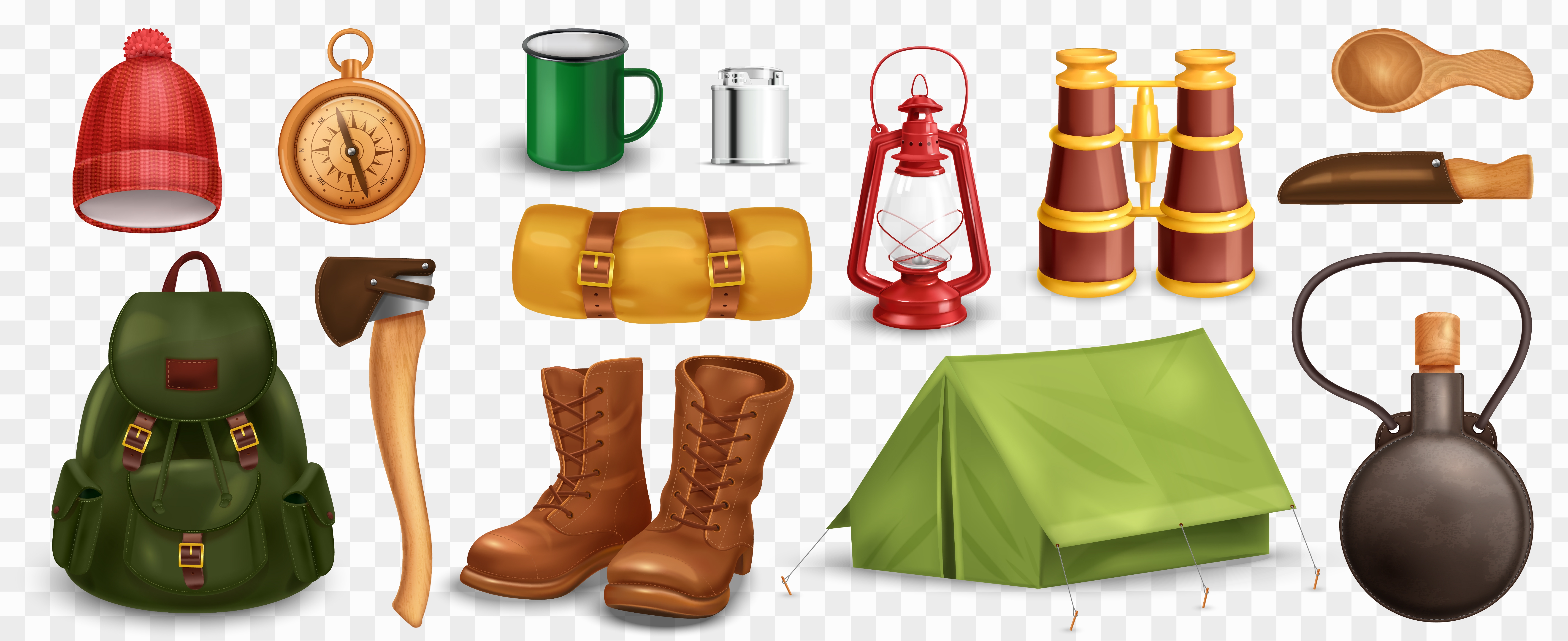 1 张 逼真的户外露营工具装备素材下载