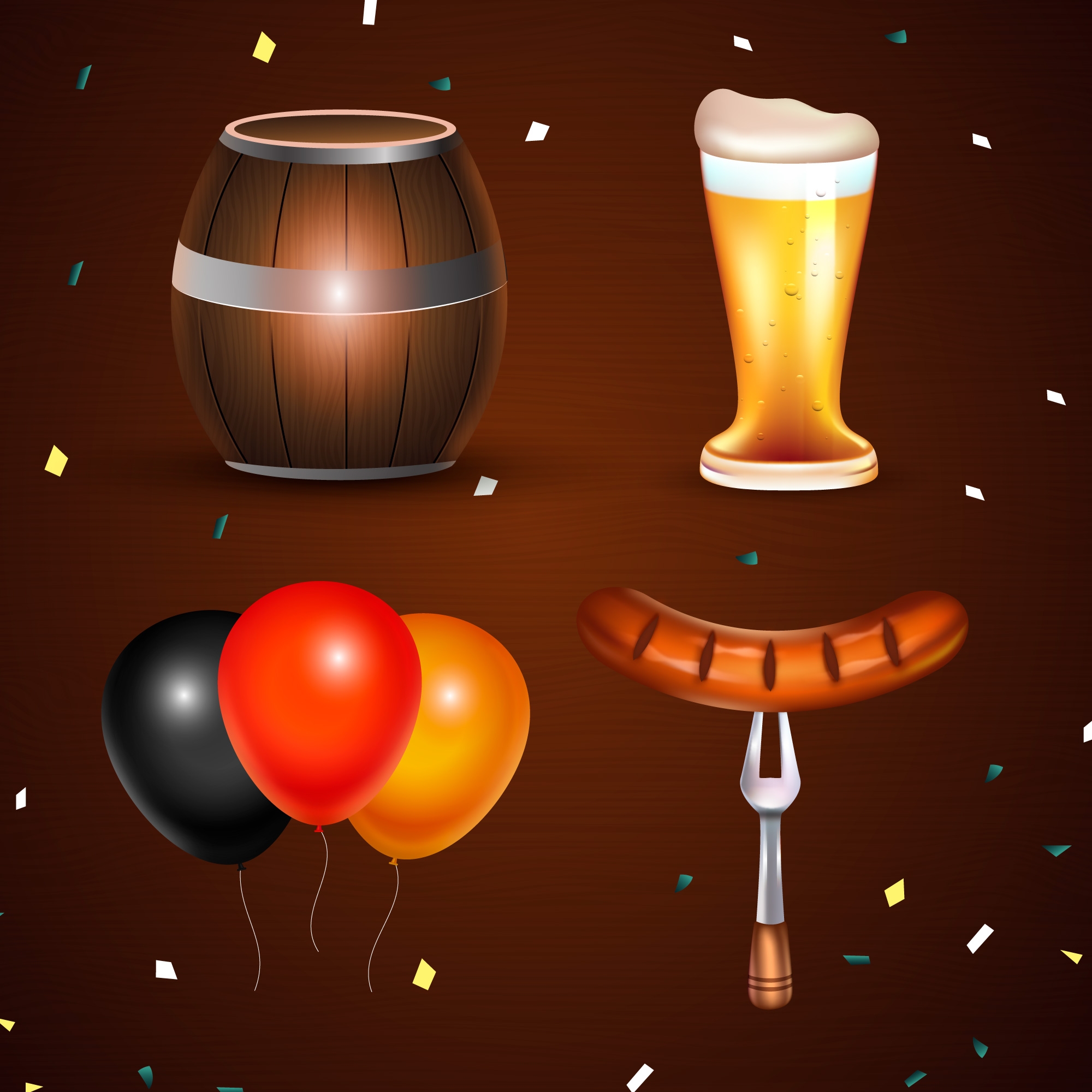 1 张 深咖啡啤酒酒桶香肠面包素材下载