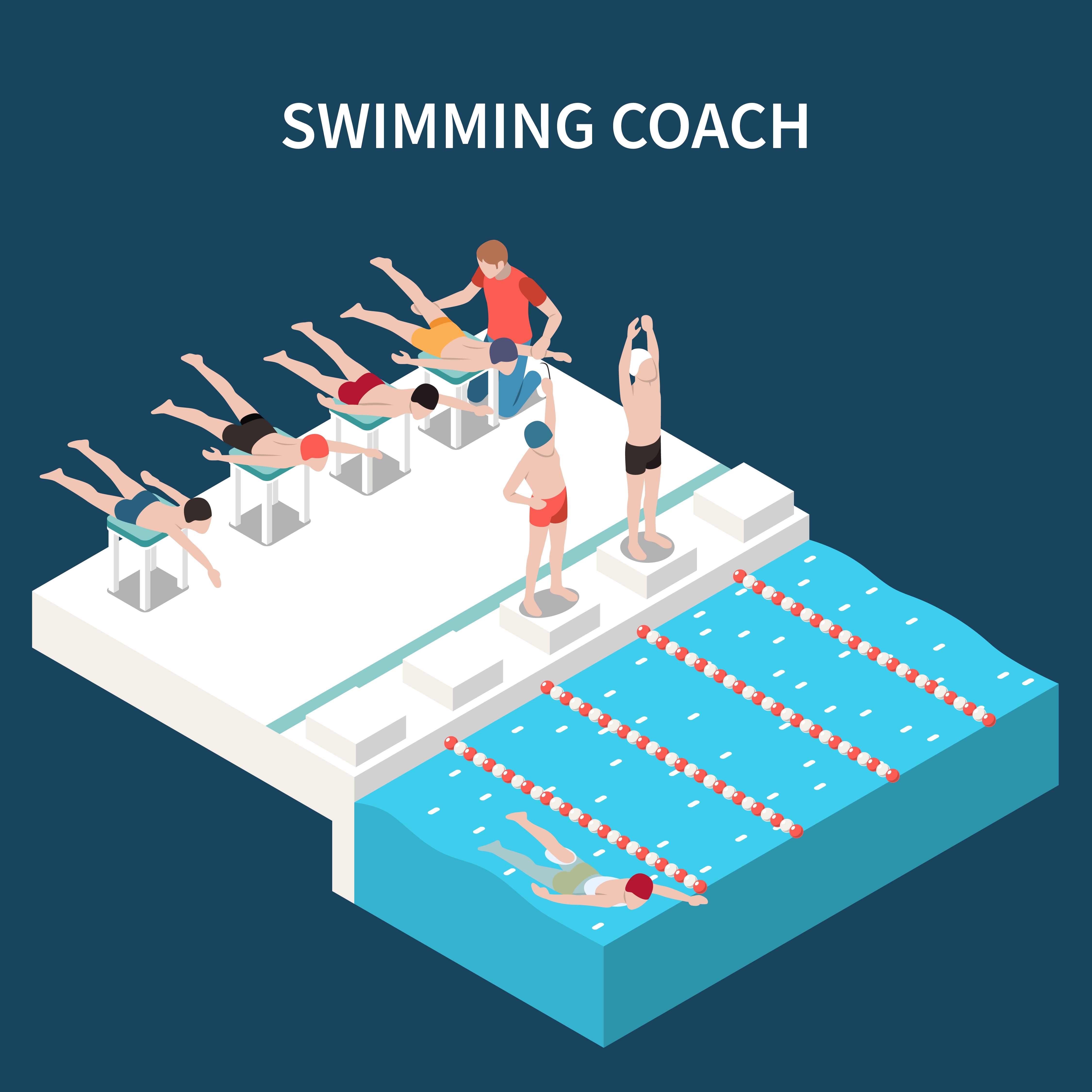 1 张 卡通儿童游泳学校等距仰泳矢量图