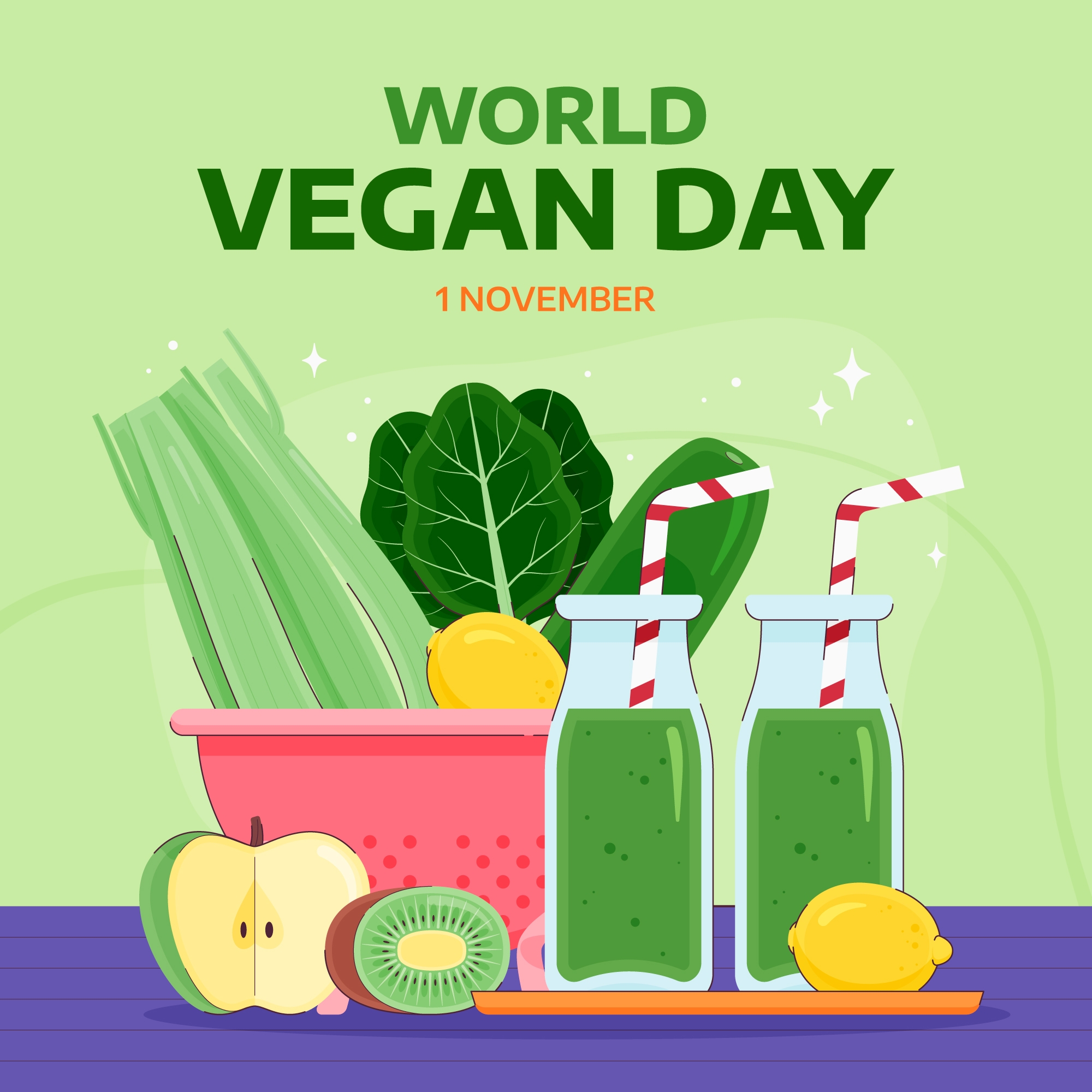 1 张 卡通绿色世界素食日庆祝活动