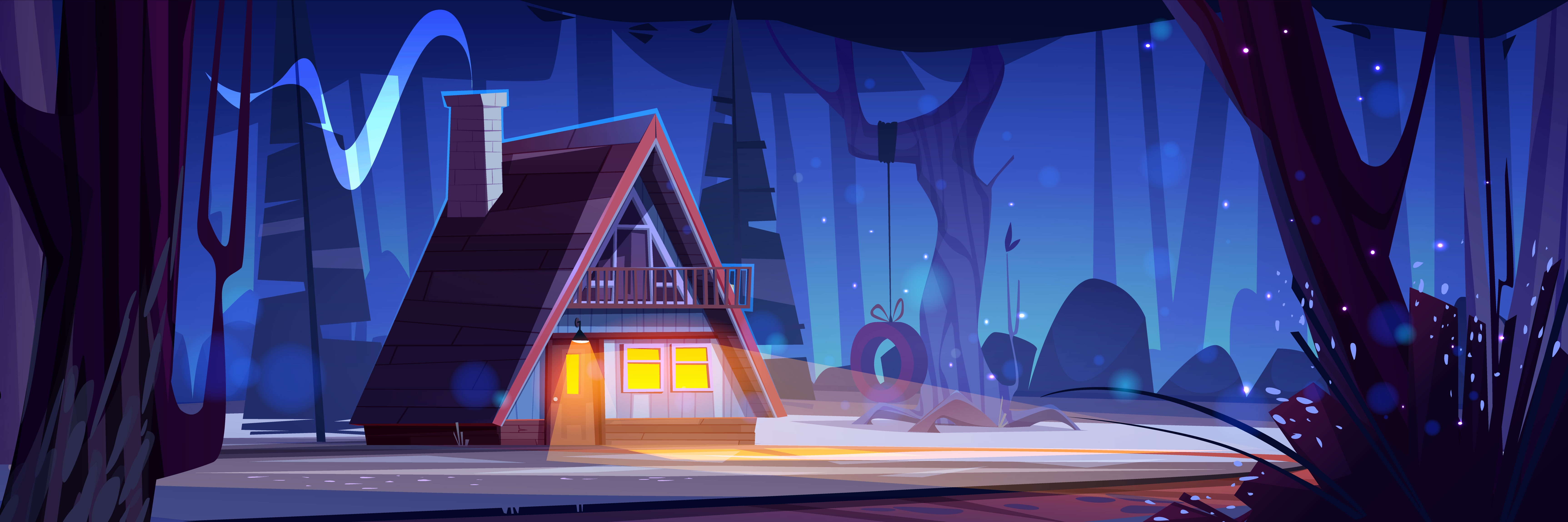 1 张 蓝色卡通木屋夜景场景素材