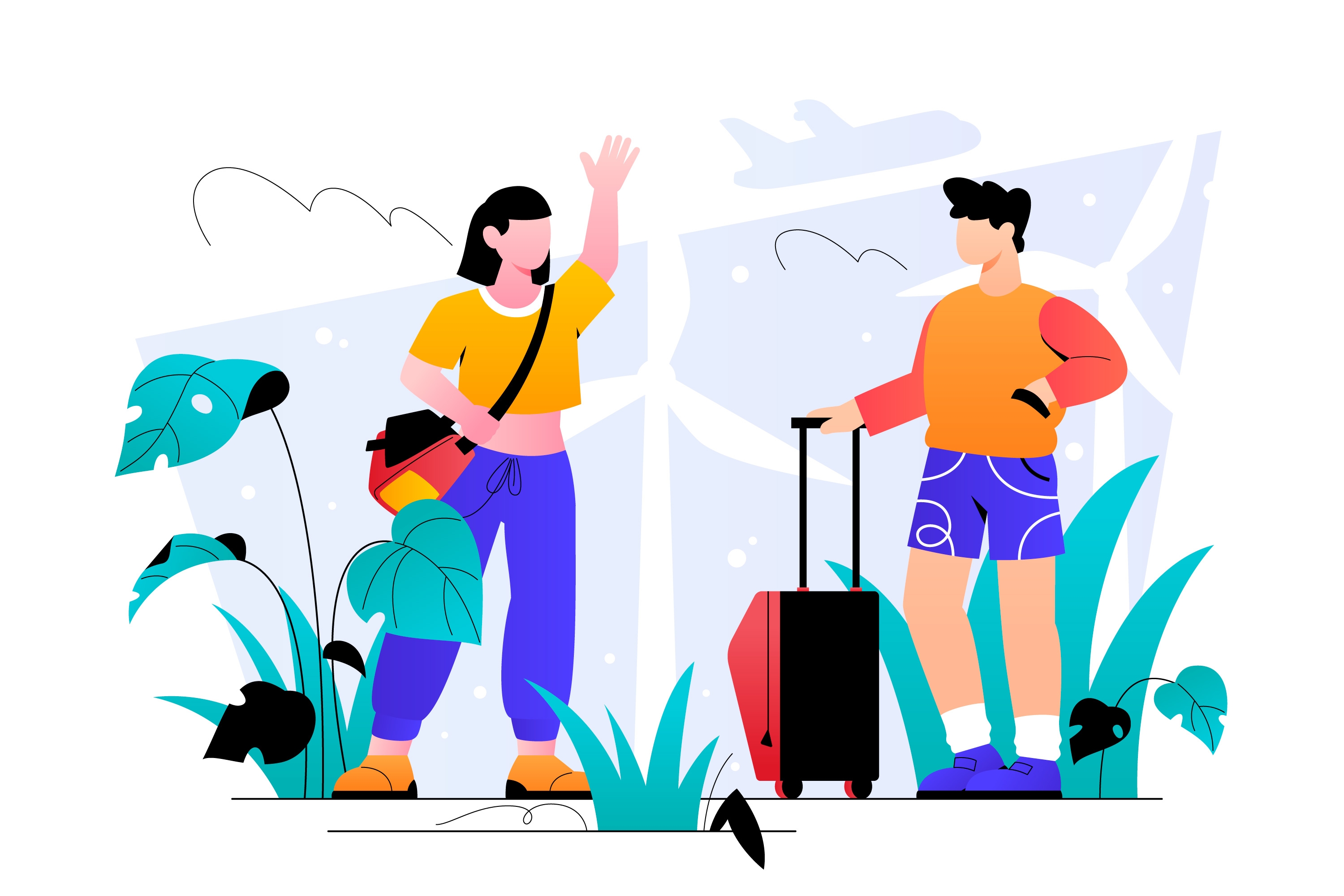 1 张 男女手提旅行箱矢量集