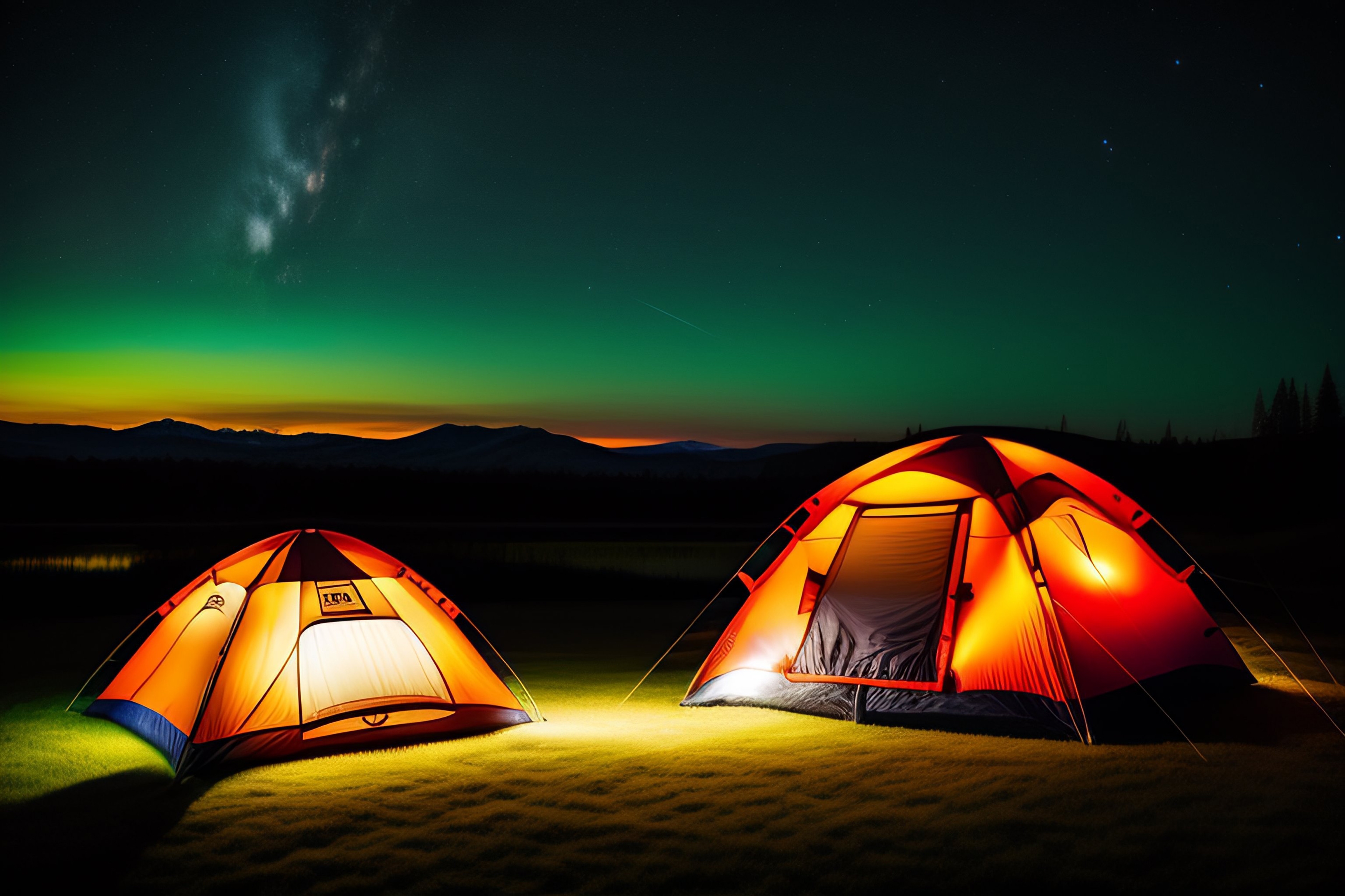 1 张 傍晚户外开灯露营的图片