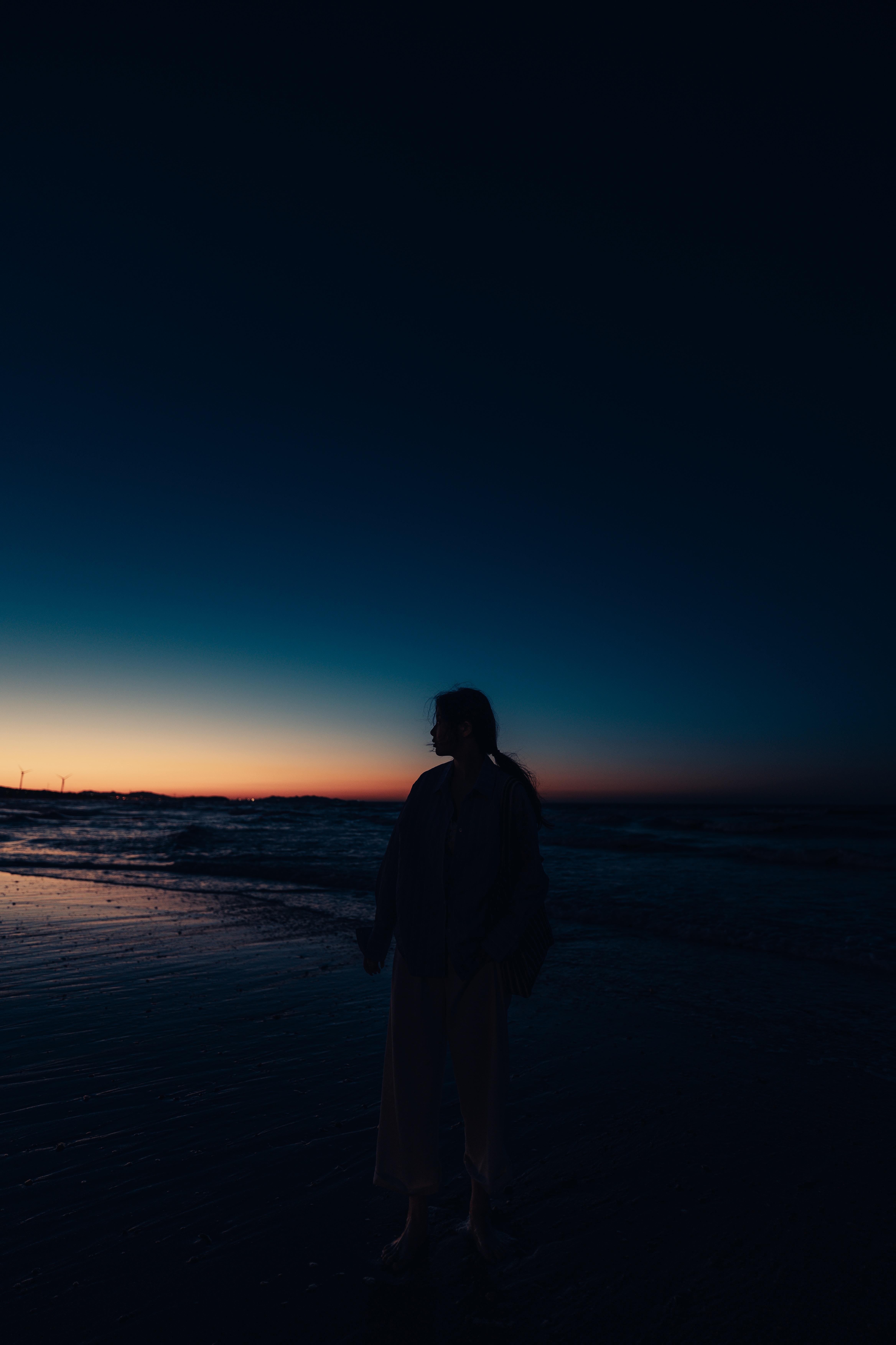 1 张 日落下海滩散步的女人