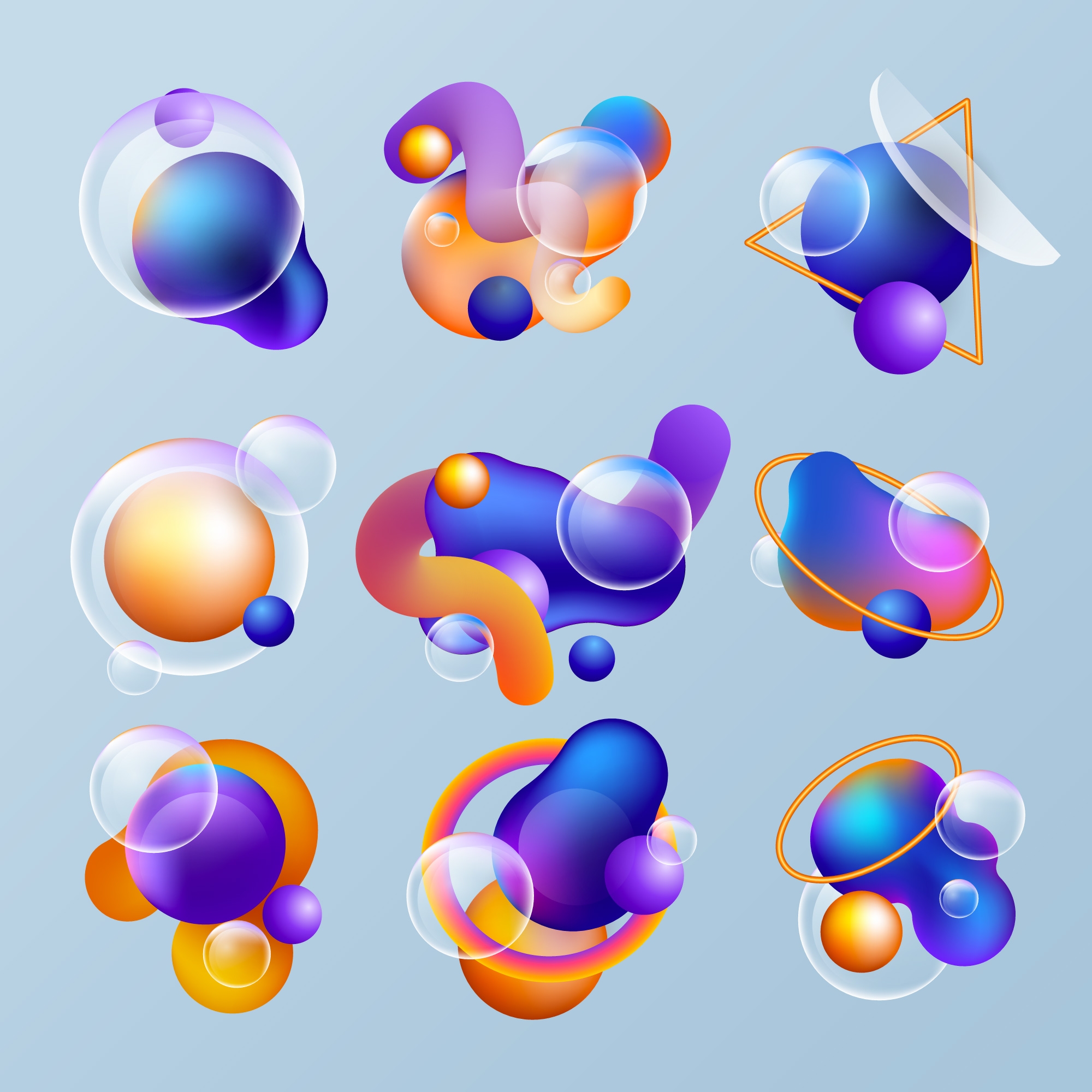 1 张 九款立体3D几何泡泡素材