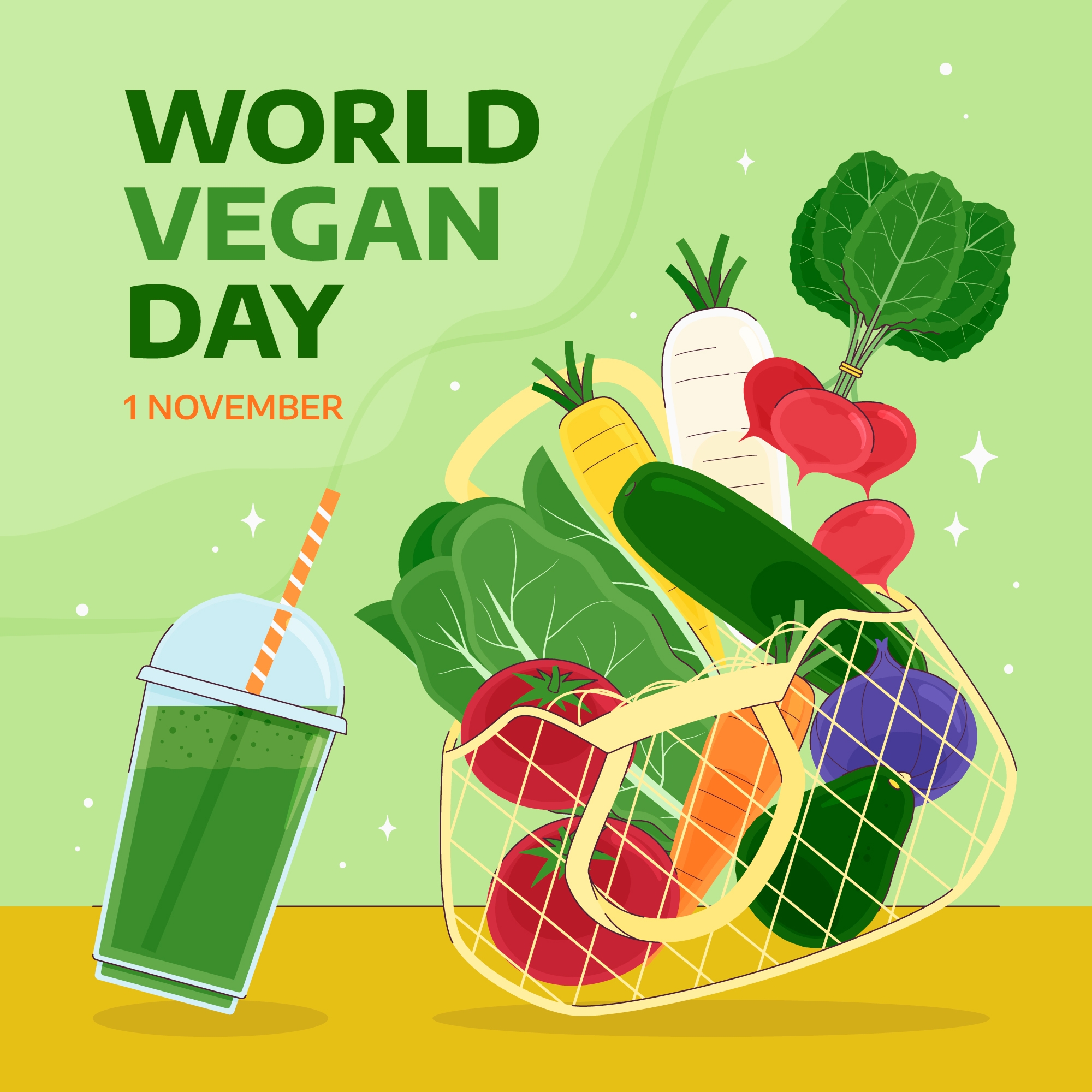 1 张 卡通绿色世界素食日庆祝活动
