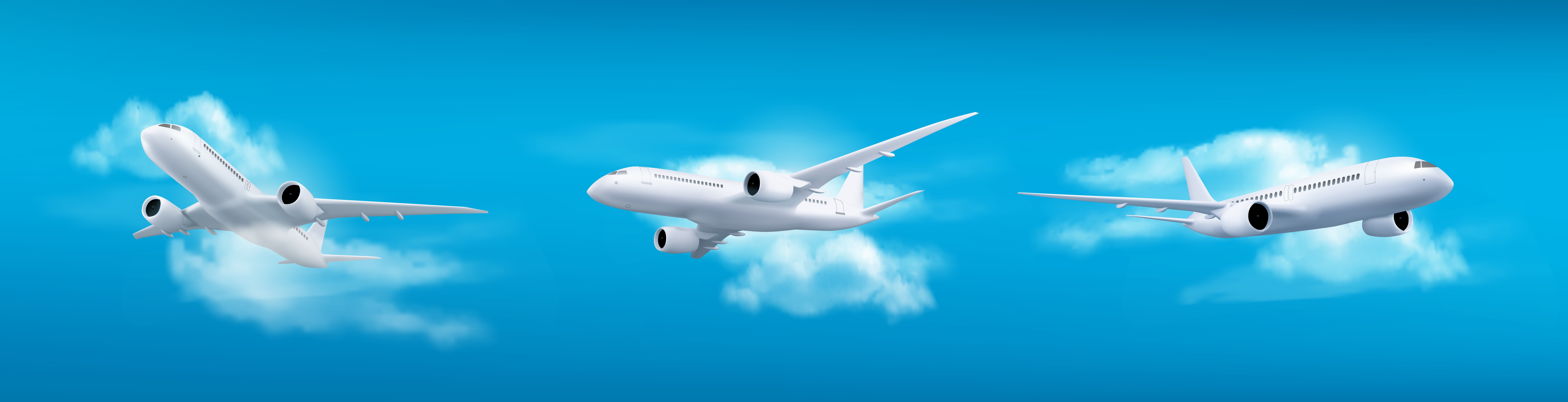 1 张 立体白云下的三款航空飞机素材