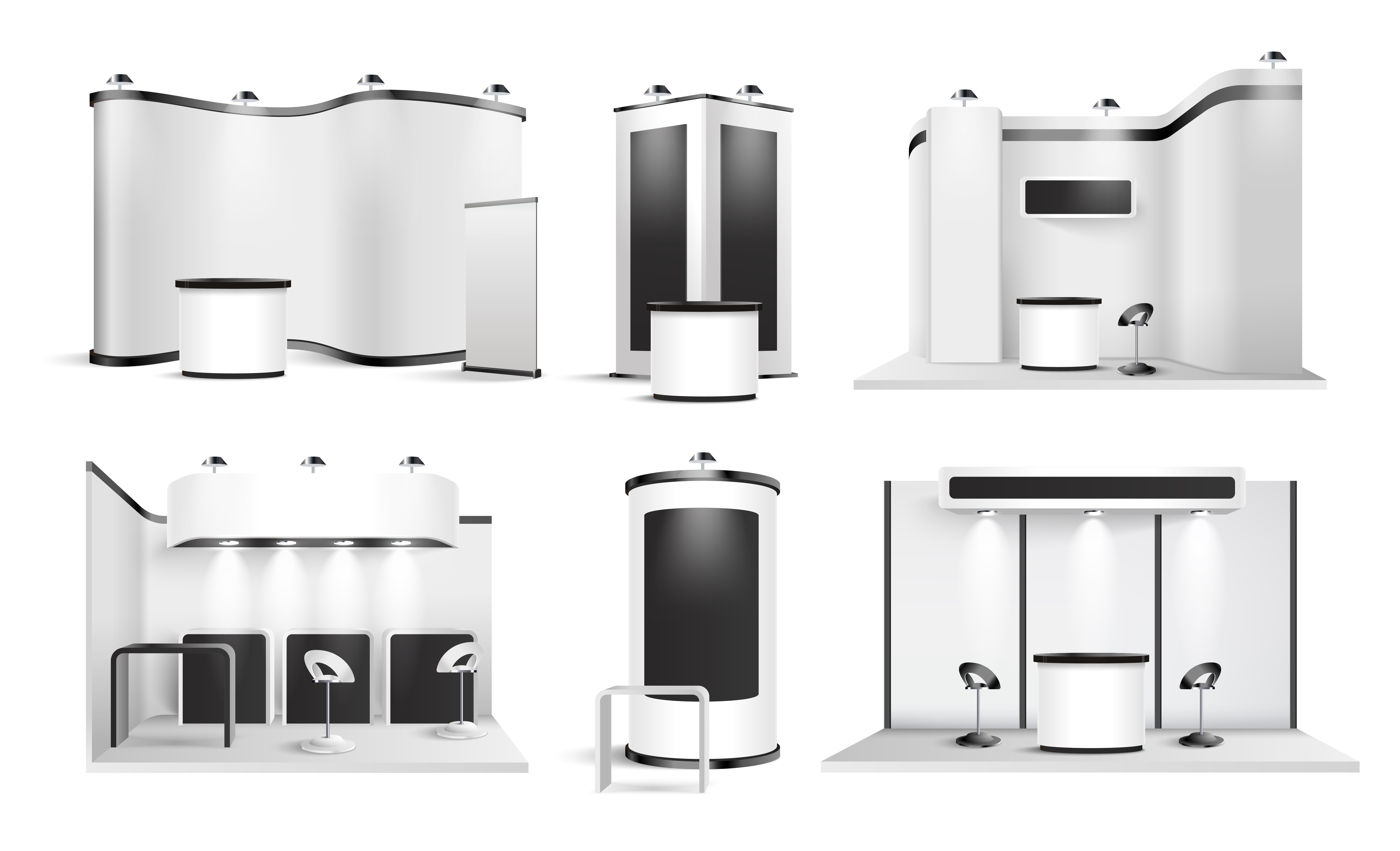 1 张 逼真的现代黑白风格展台模板