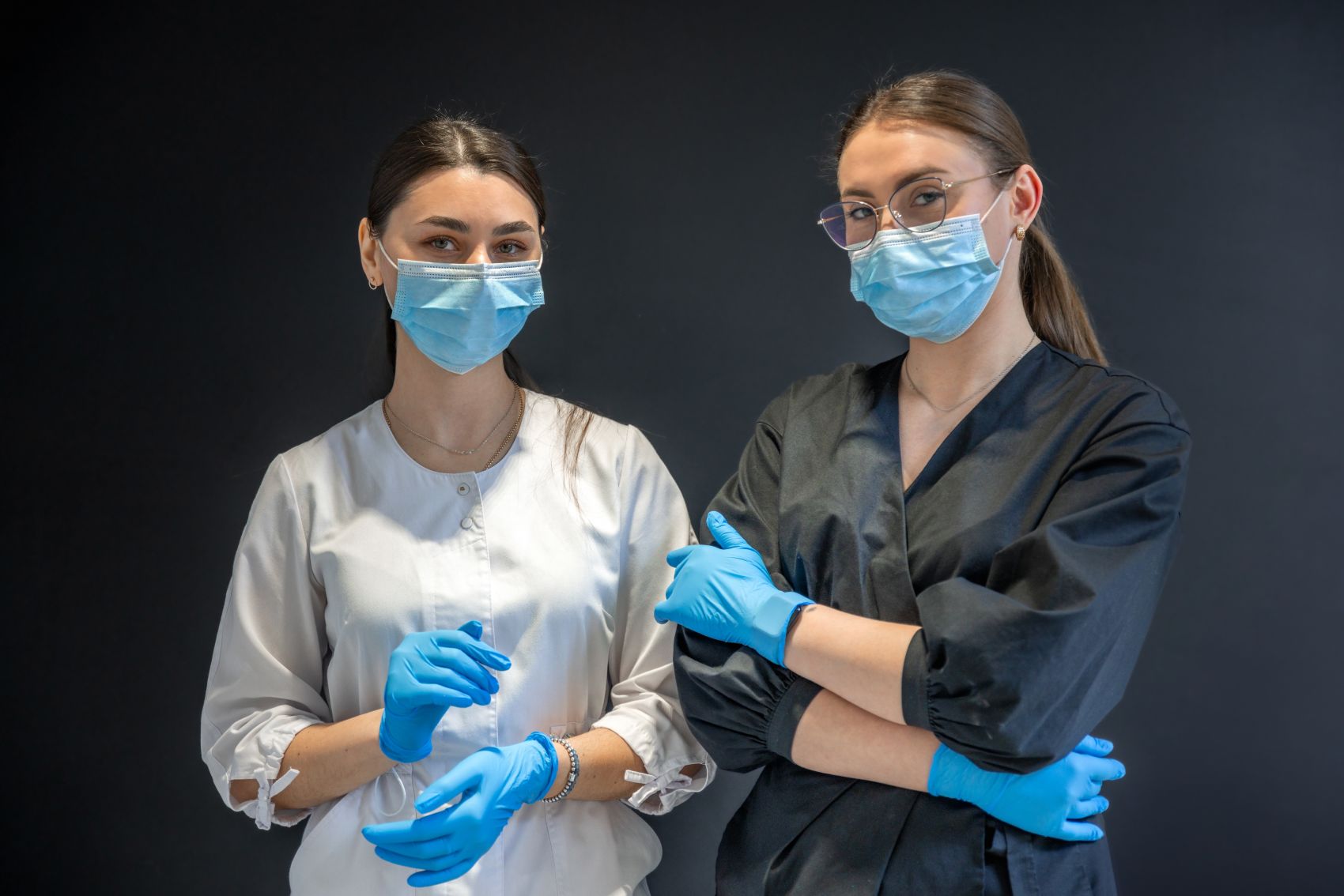 1 张 戴蓝色手套的女医生