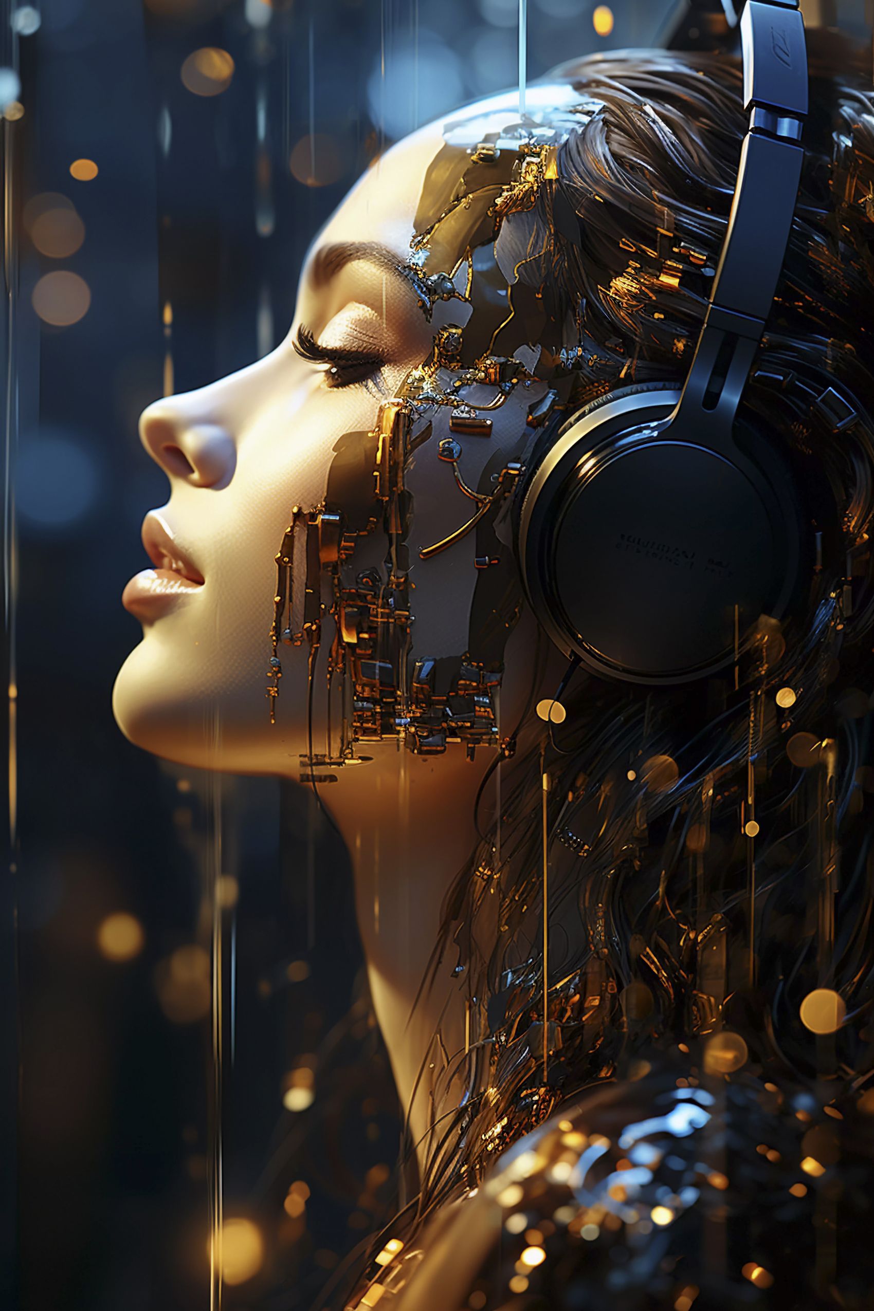 1 张 戴耳机听歌的AI女机器人