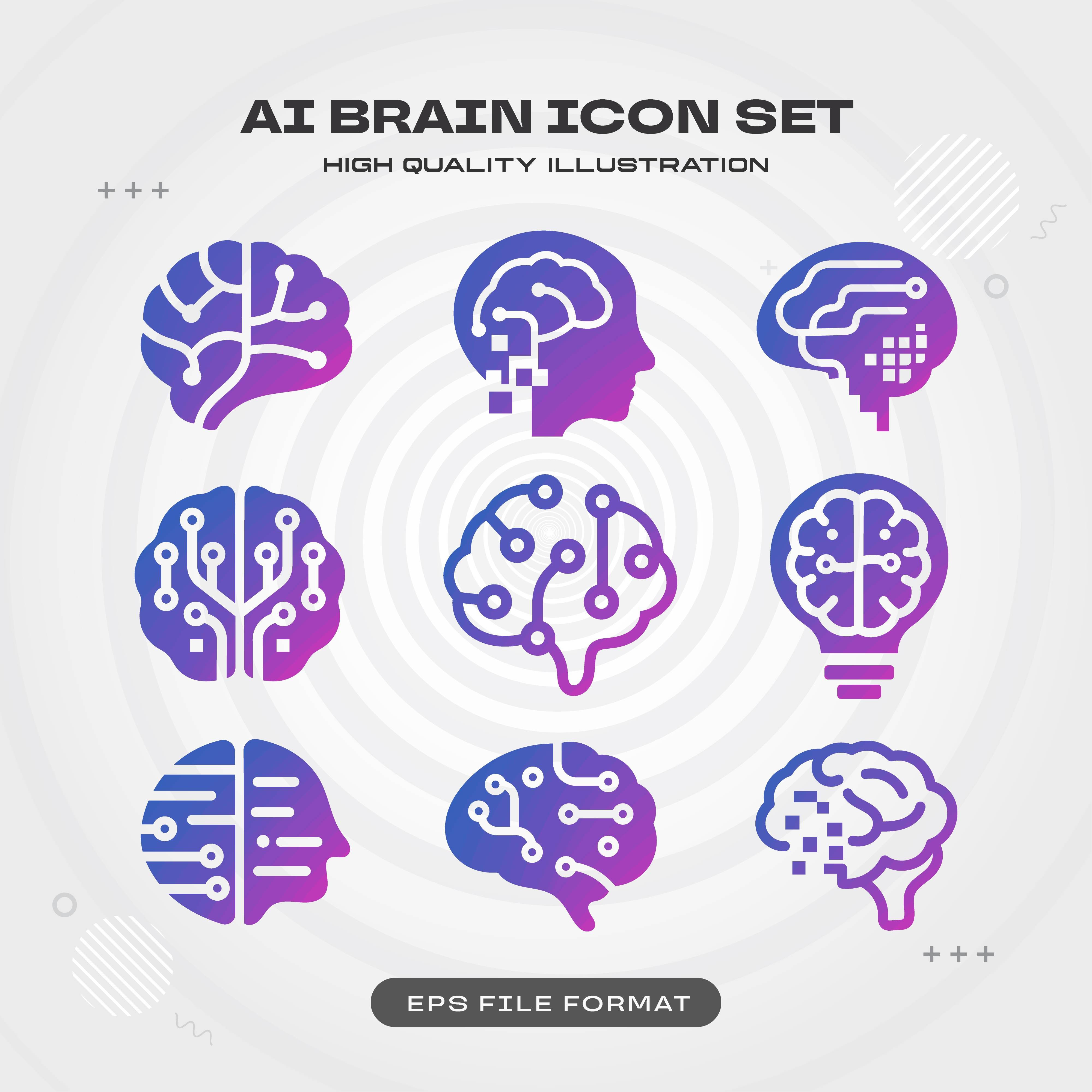 1 张 九款紫色人工智能大脑图标集矢量图