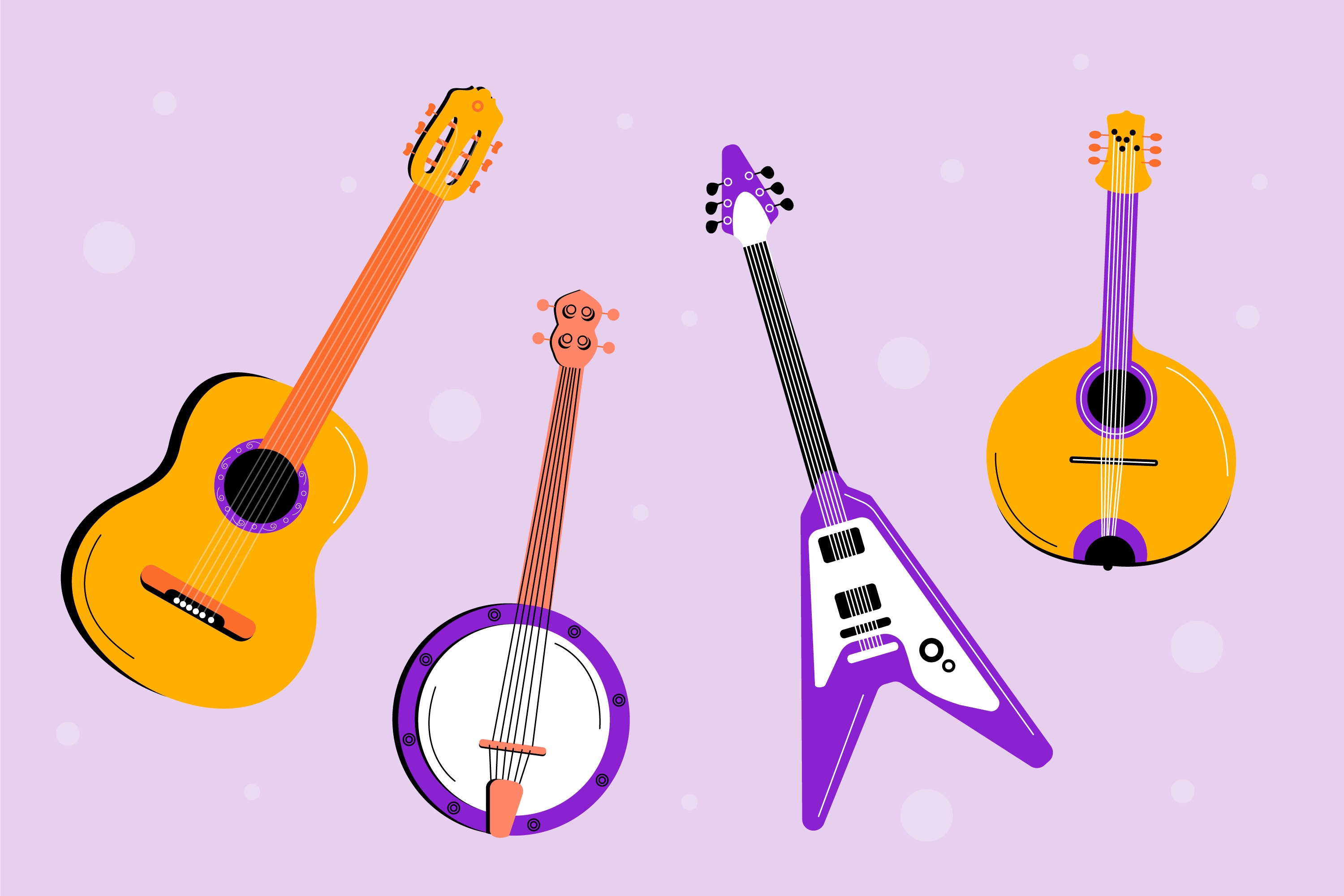 1 张 四款吉他班卓琴乐器素材