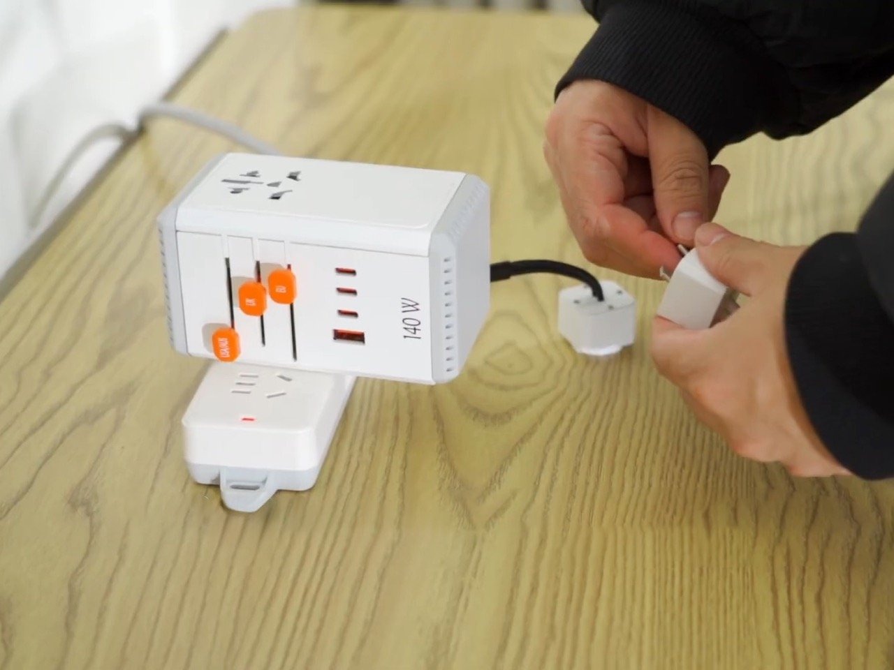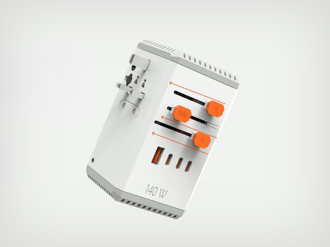 8 张 巧妙地设计了MAGSAFE无线充电和隐藏电缆的140W GAN旅行适配器