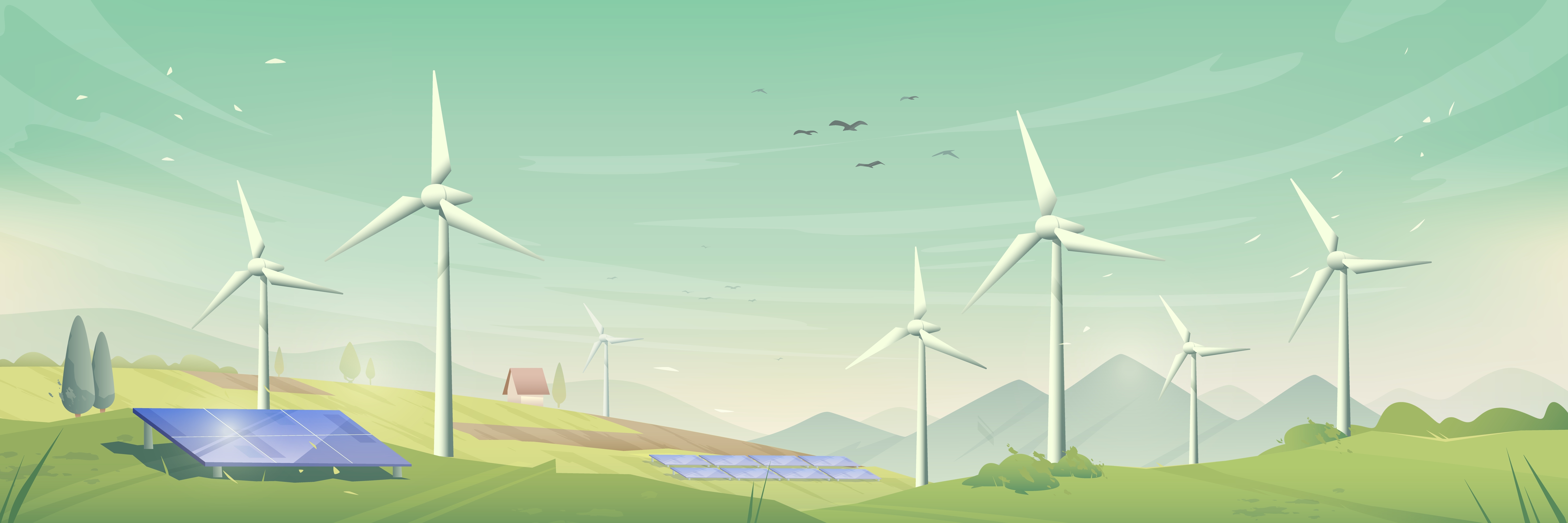 1 张 卡通黄昏风电场插画场景素材
