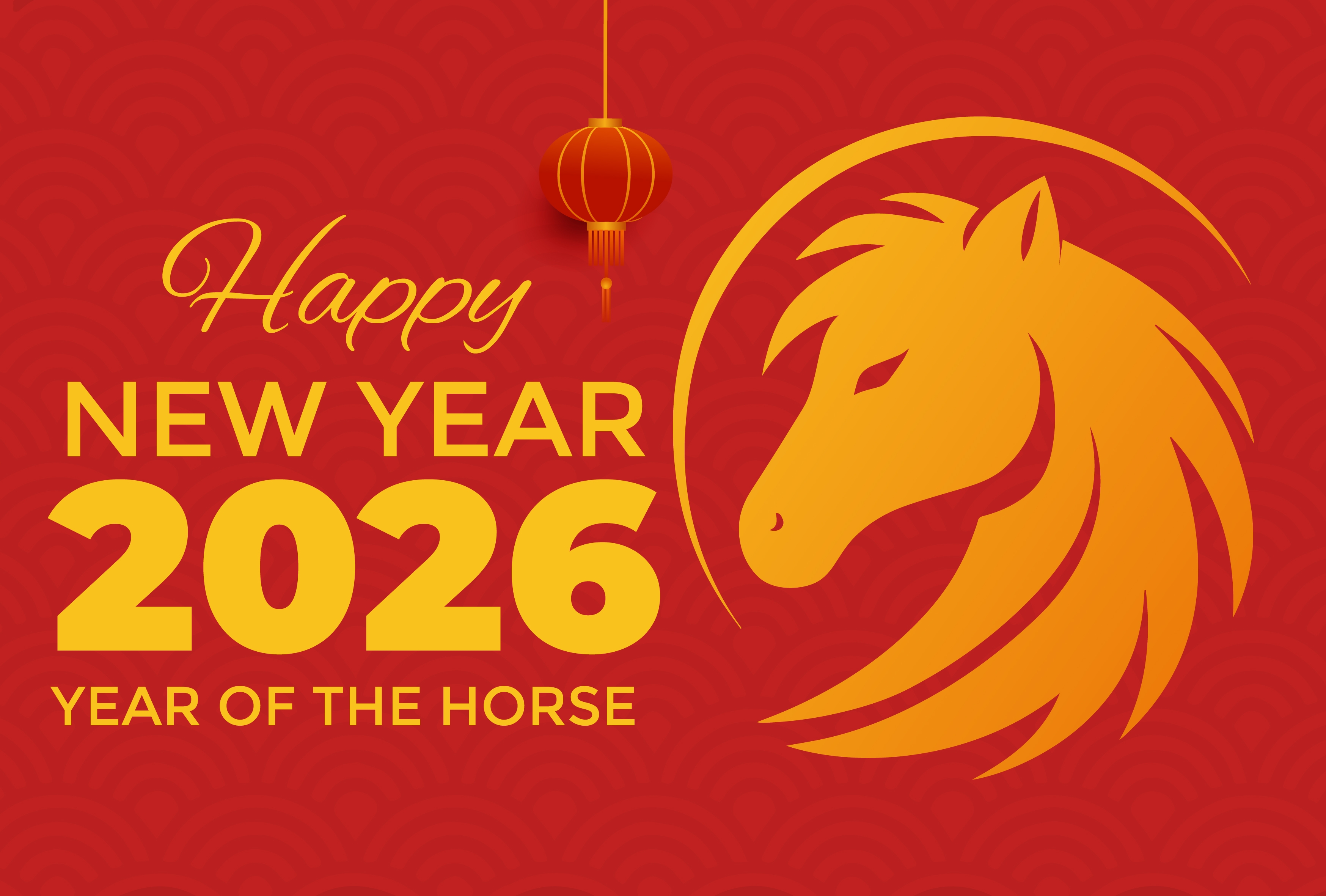 1 张 2026 马年新春主题插画:红金几何纹与传统元素的节日视觉设计