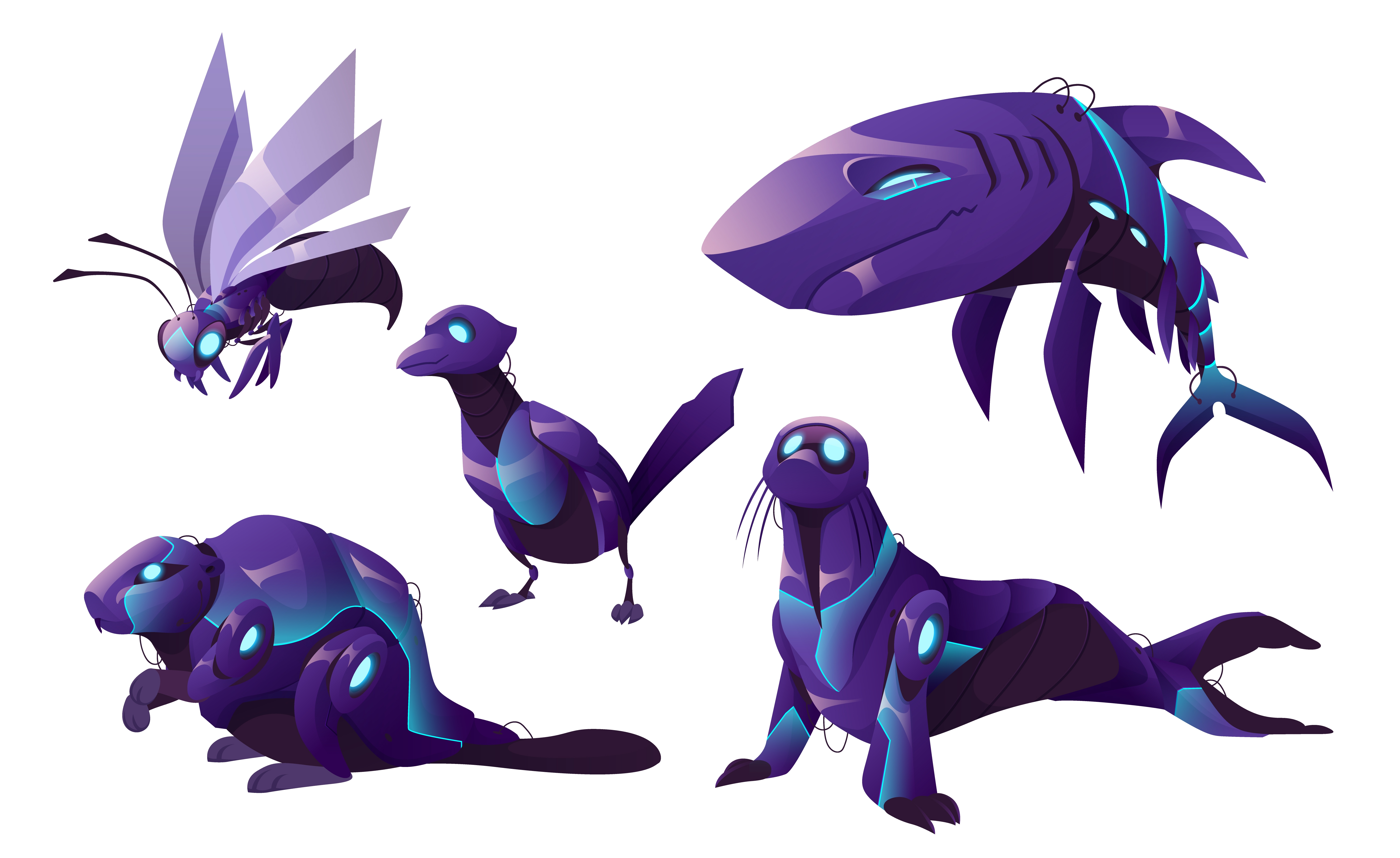 1 张 五款机械动物形象插画素材