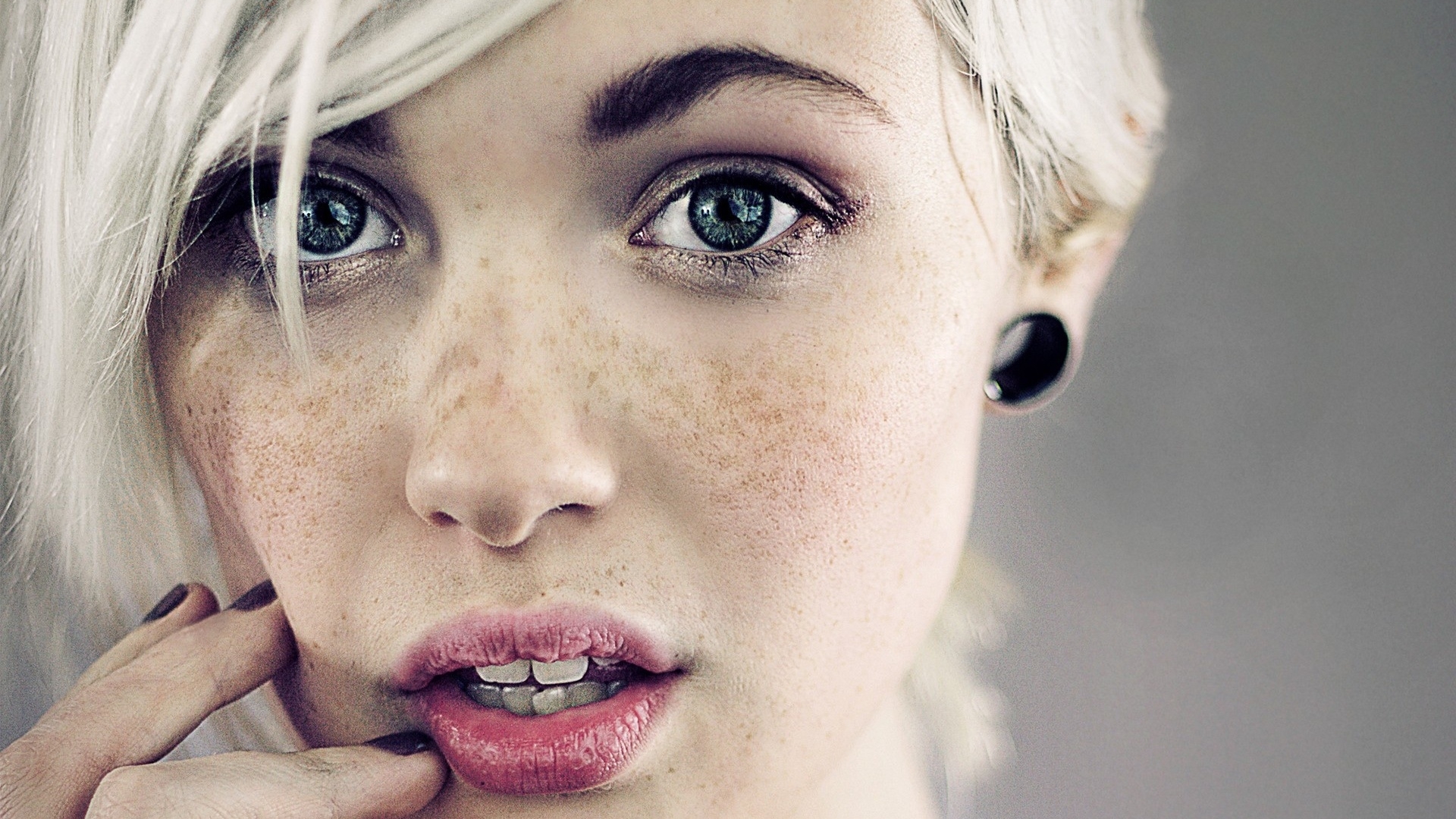 1 张 用手抚摸脸颊的雀斑女郎