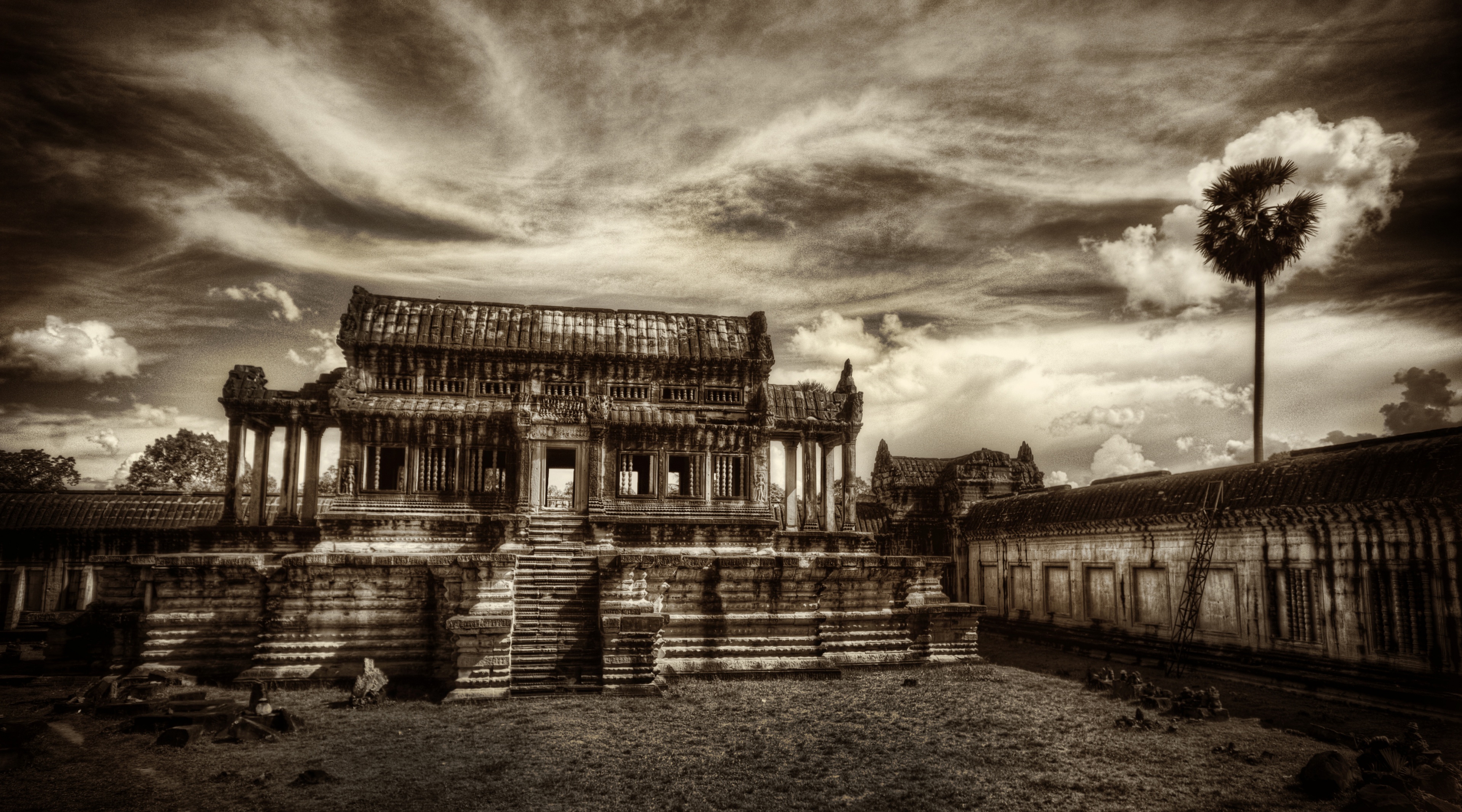 1 张 柬埔寨复古山寨寺庙黑白壁纸