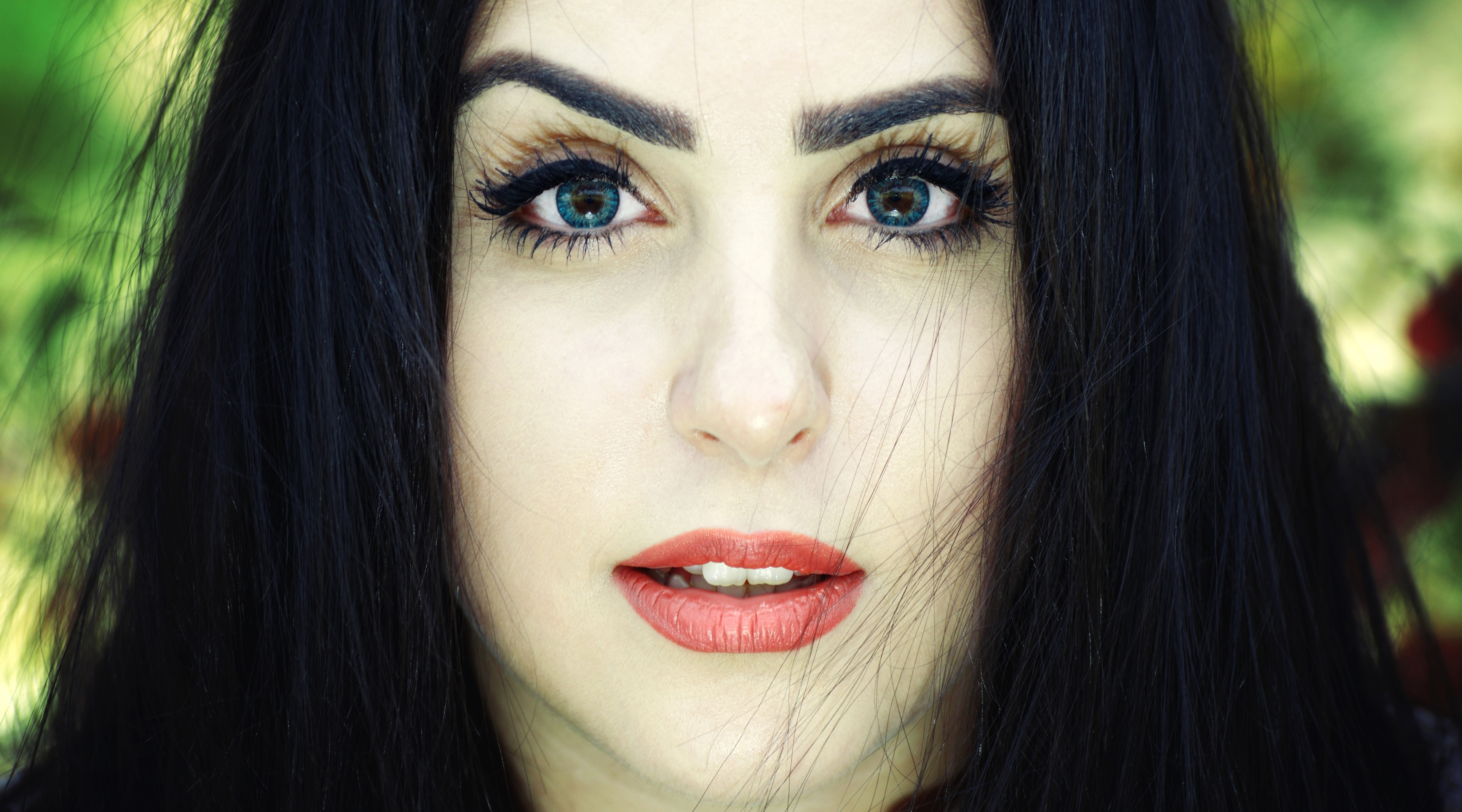 1 张 给嘴巴抹黑色的黑发美女