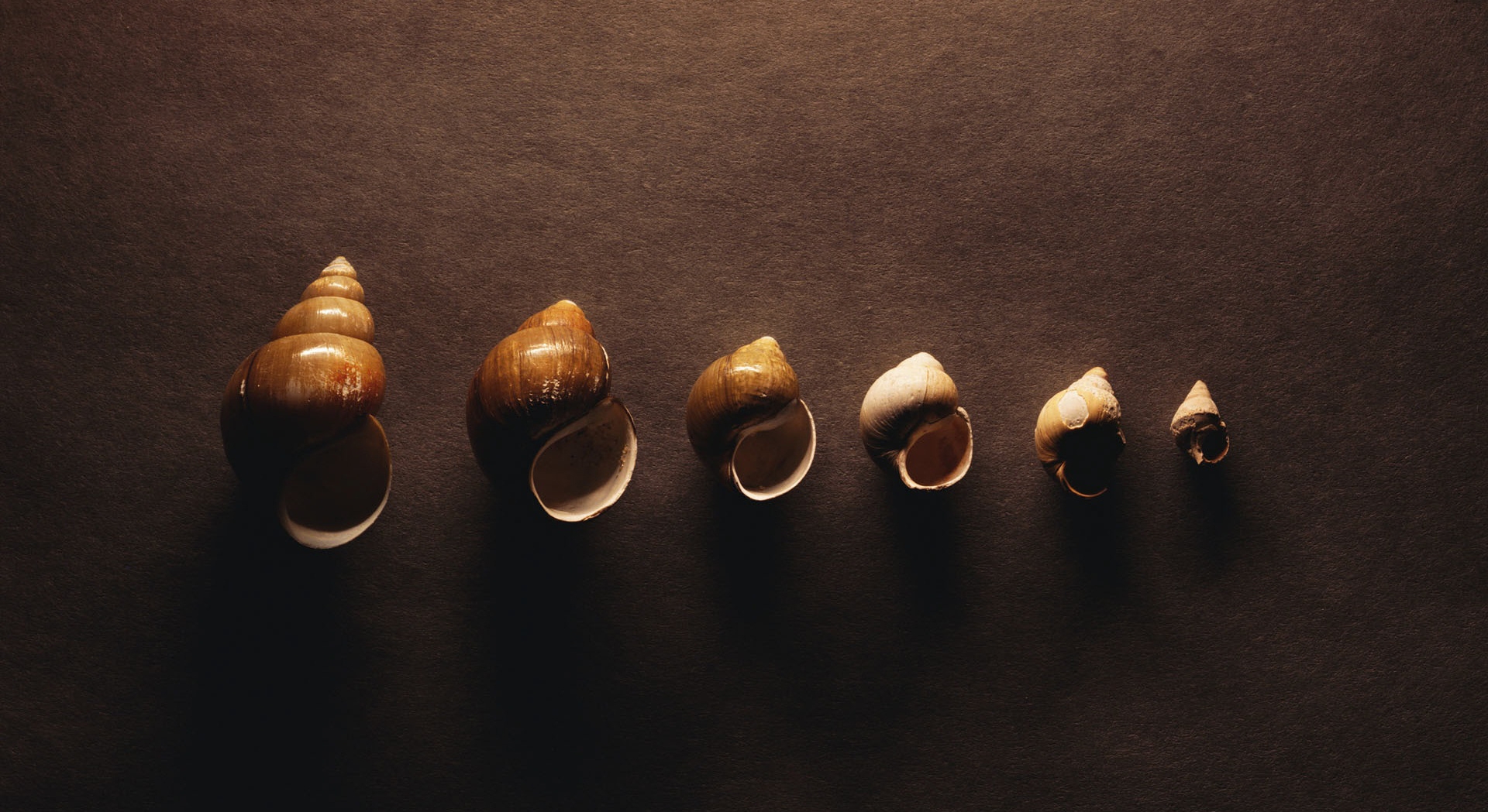 1 张 从大到小摆成一排的蜗牛壳