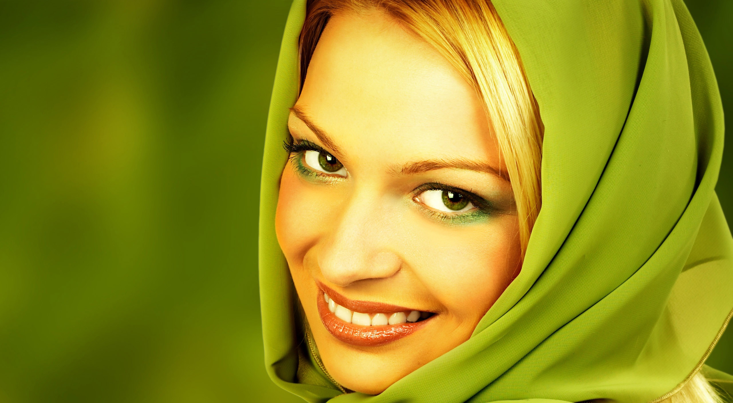 1 张 张嘴微笑的蓝眼肌肤女郎