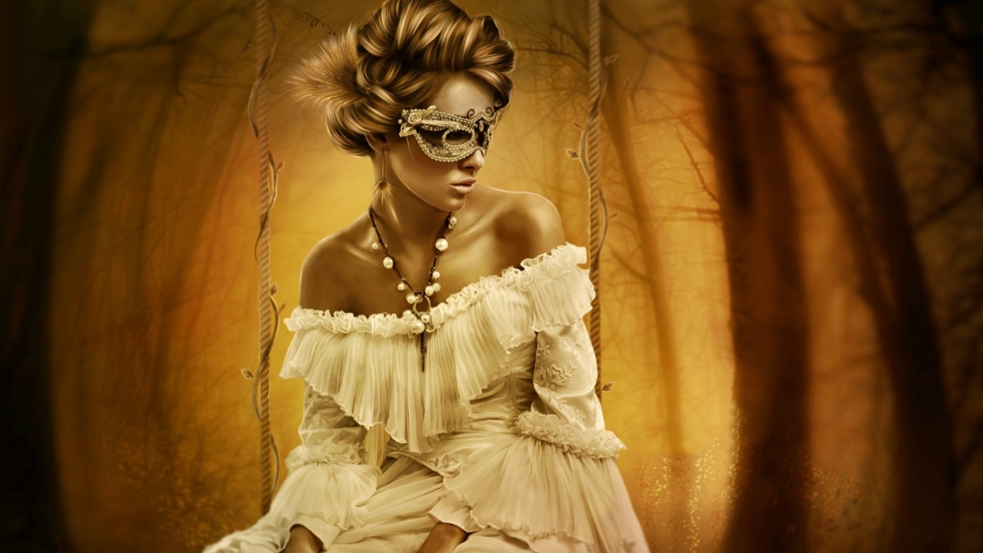 1 张 手捧黄色菊花的面具彩绘女郎