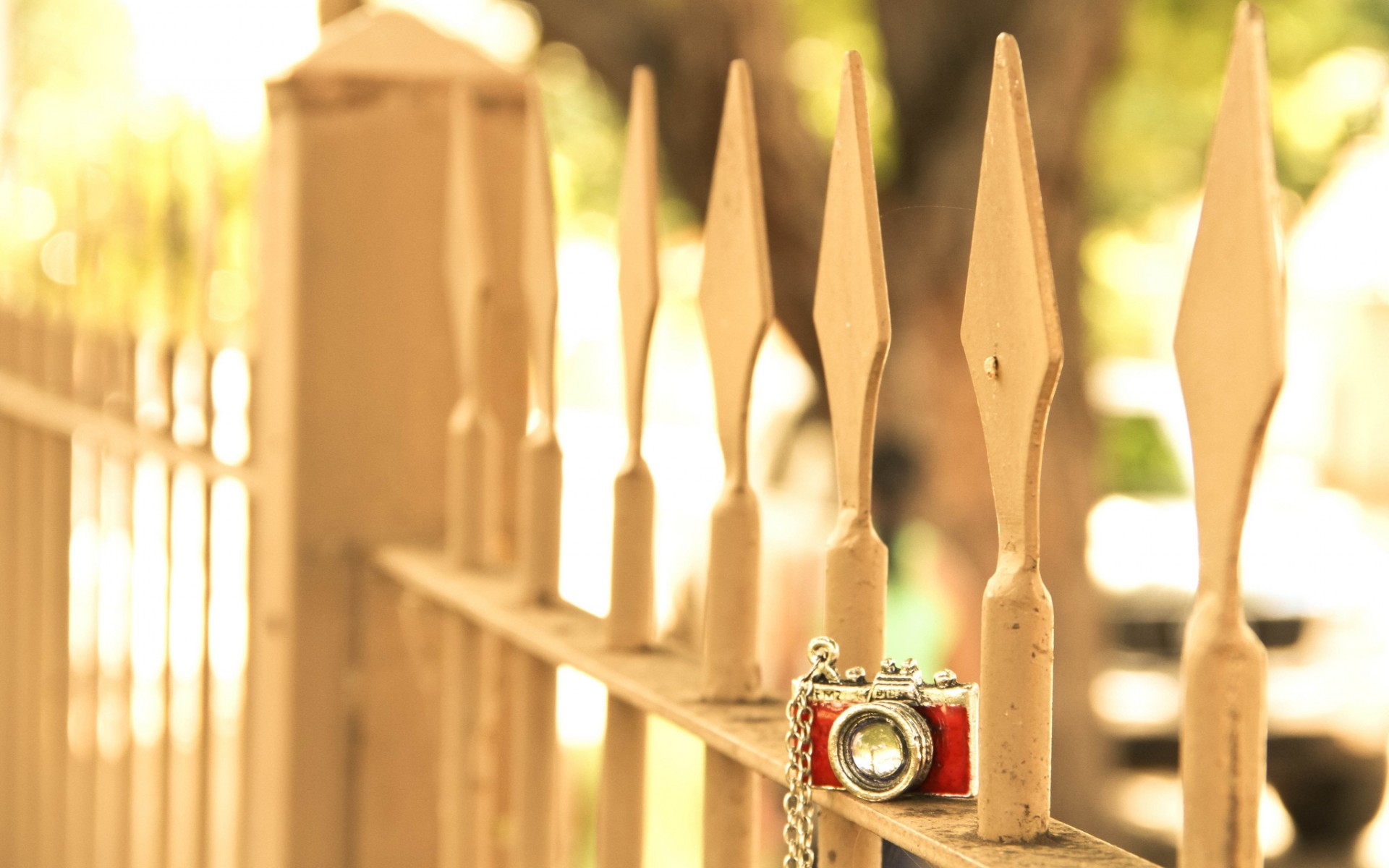 1 张 白色栅栏前的立式数码照相机