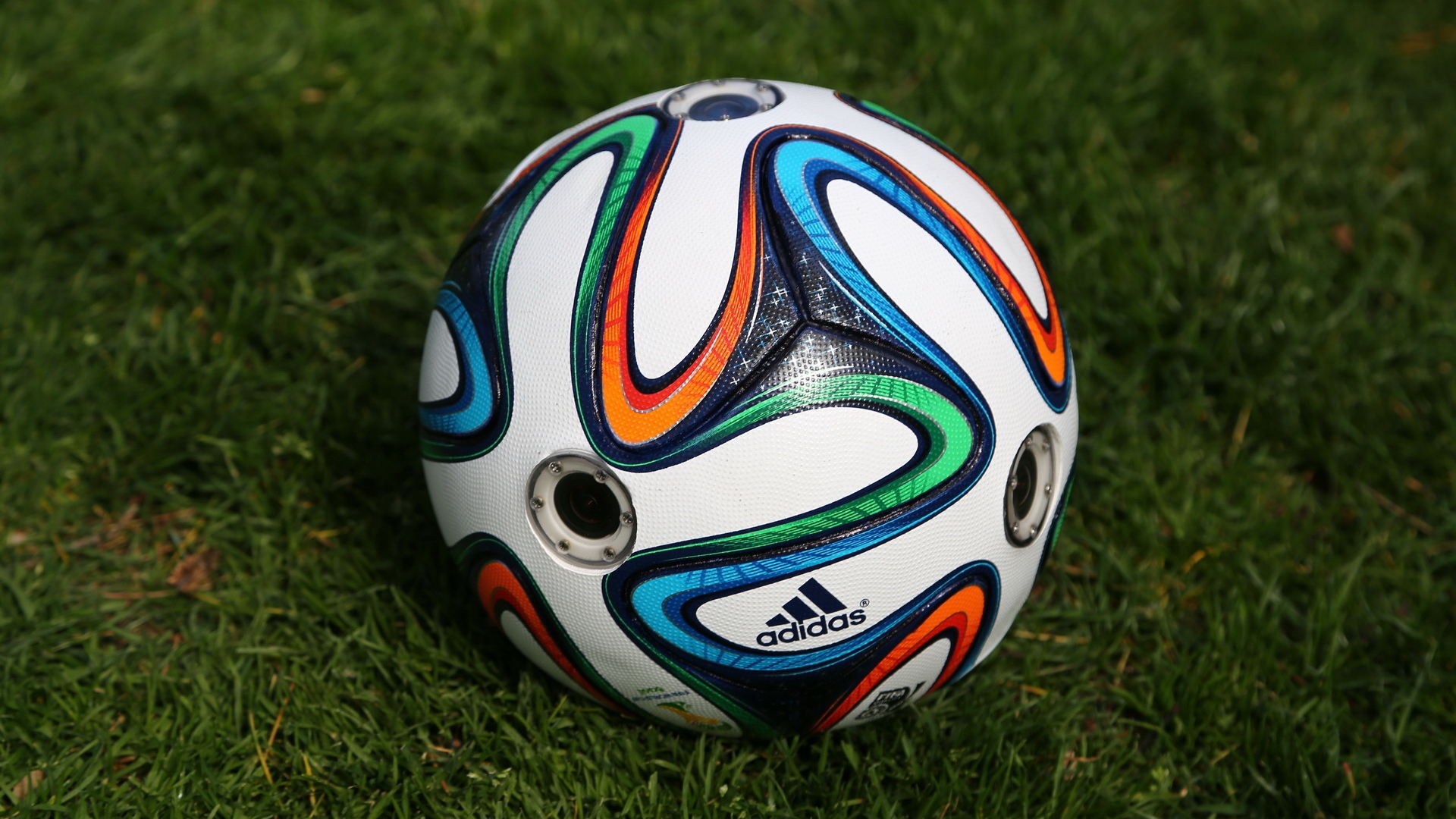 1 张 草坪上的足球-2014巴西世界杯比赛橙黑球高清壁纸下载