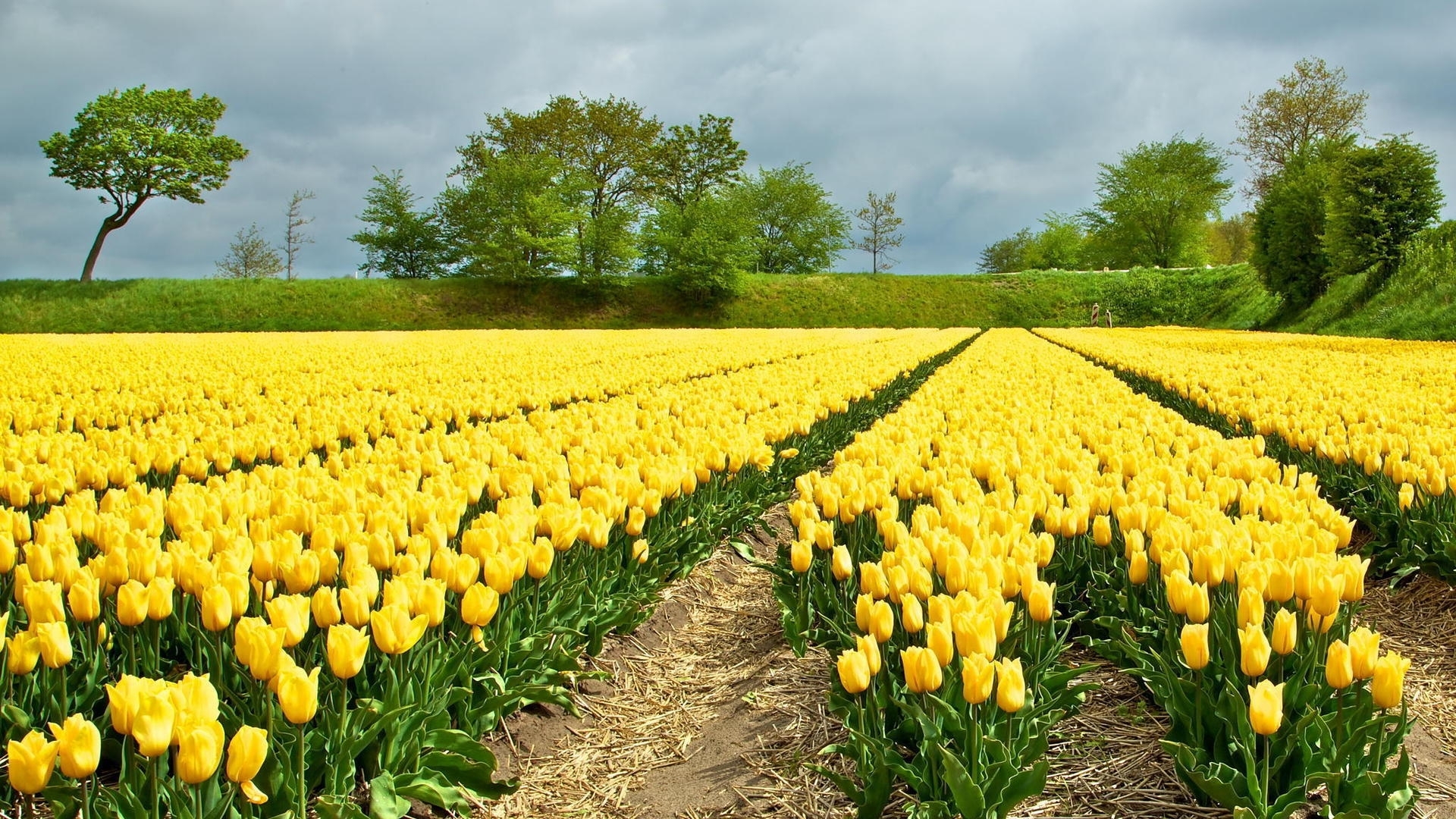 1 张 郁金香花田与复古风车景观
