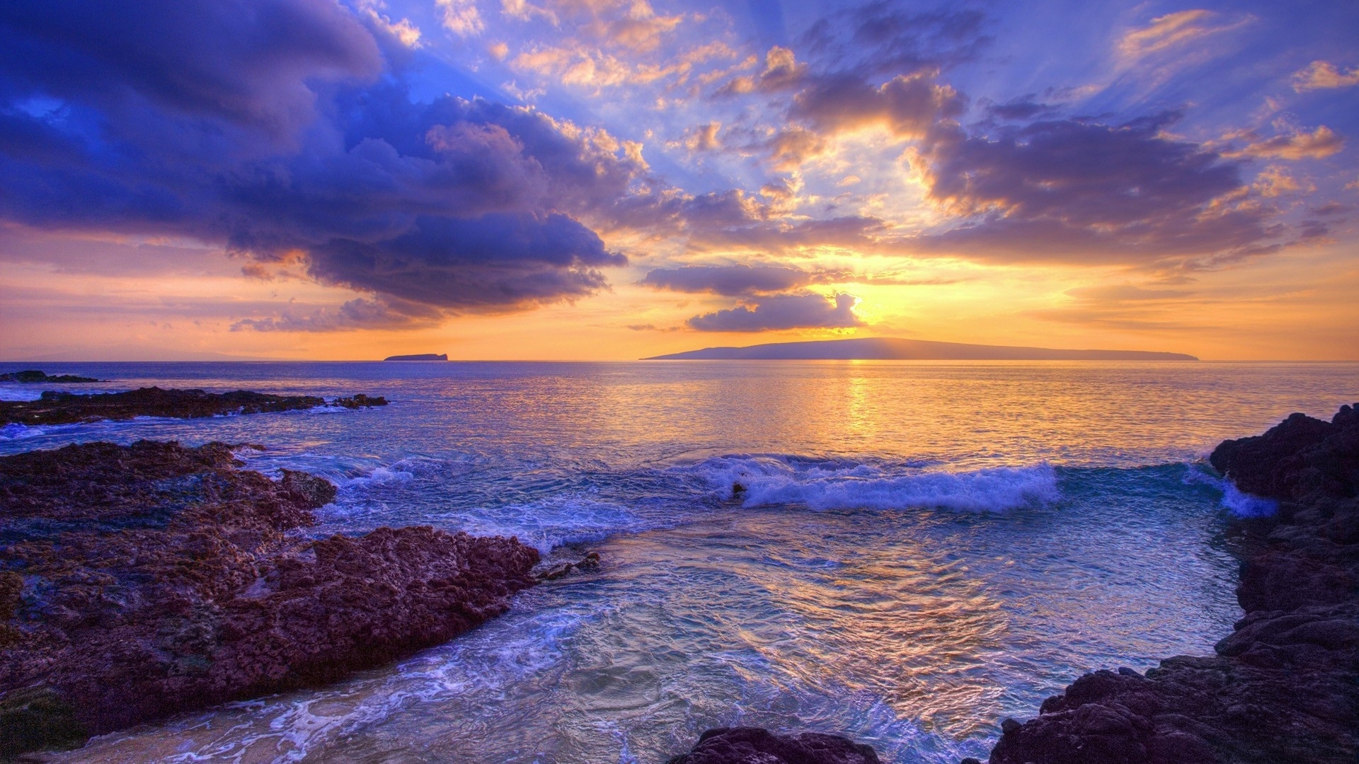 1 张 落日碎金,漫染浪卷沙岸