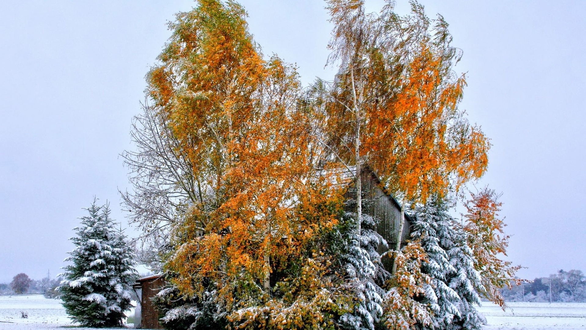 1 张 雪山下的小木屋
