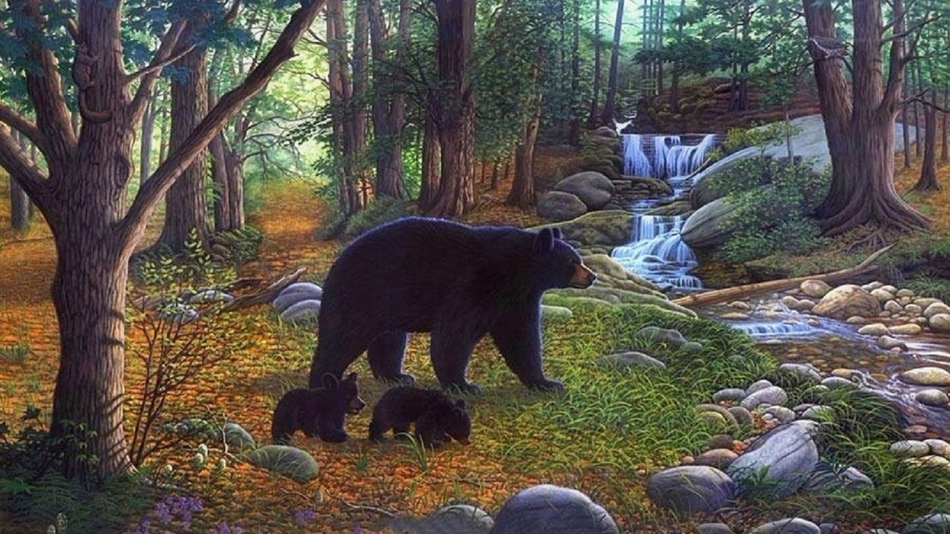 1 张 高清晰带宝宝的黑熊油画壁纸