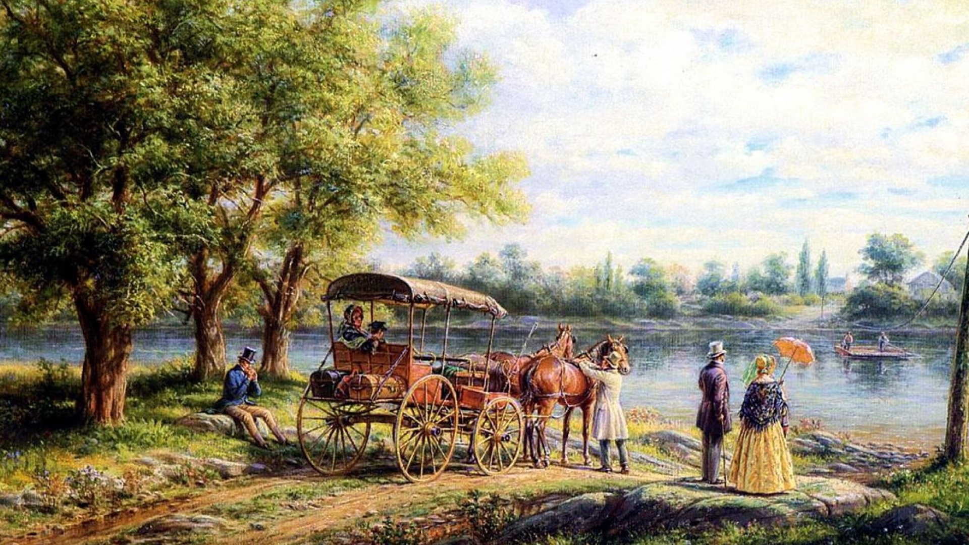 1 张 高清晰水墨情侣马车游街壁纸