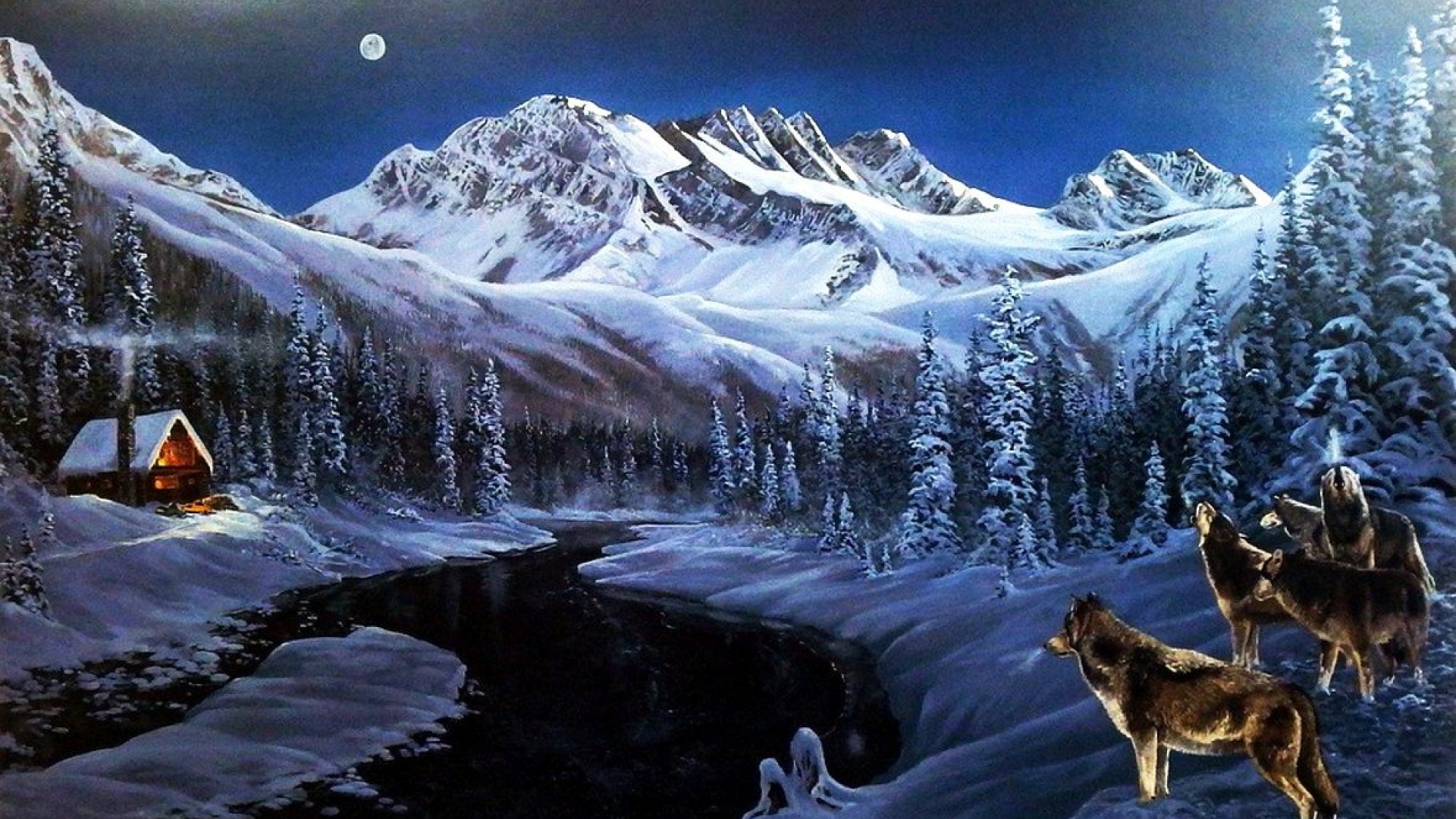 1 张 月光下狼嚎图