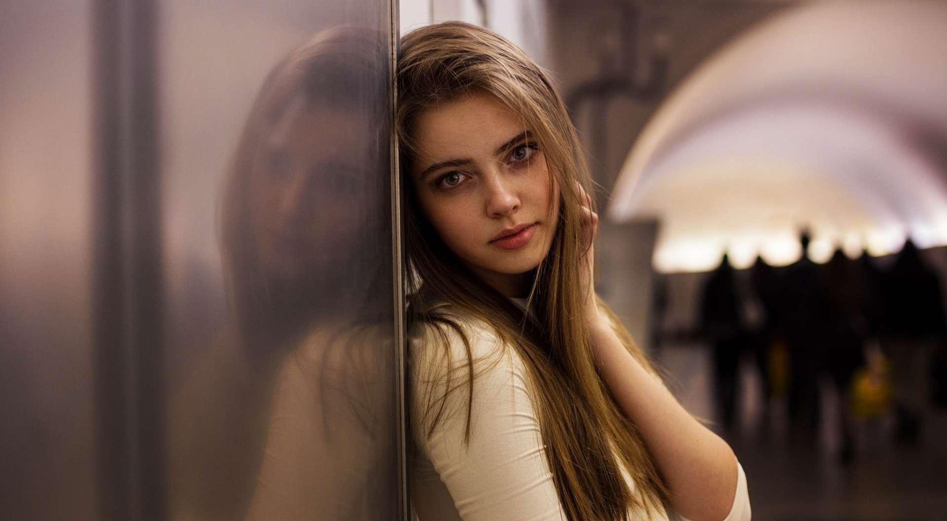 1 张 靠墙的金发女性人像